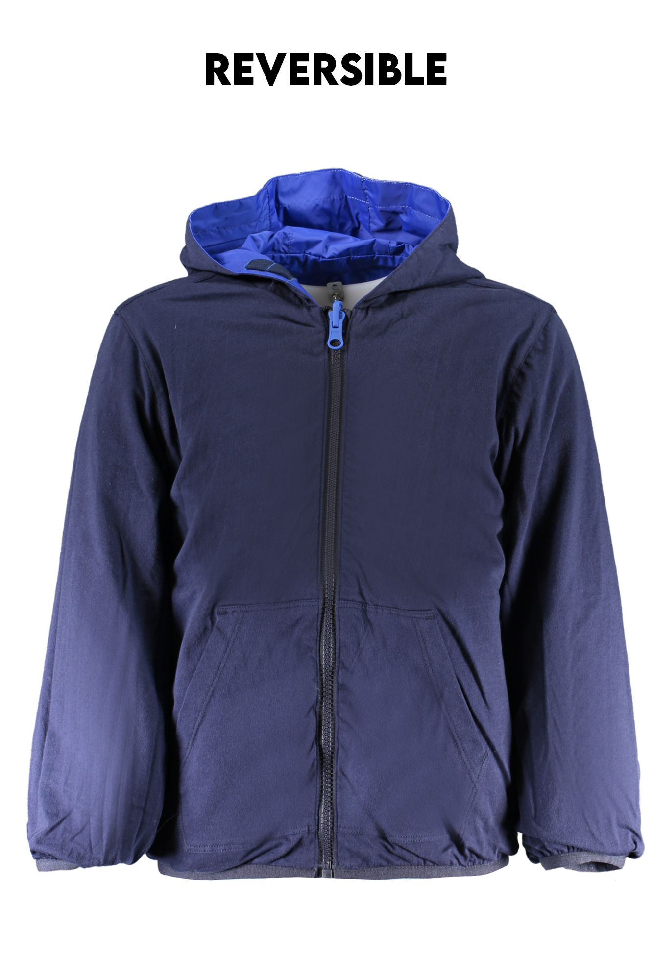 REVERSIBLE JACKET, LONG SLEEVES WITH HOOD, 2 INTERNAL POCKETS, 2 EXTERNAL POCKETS, APPLICATION, PRINT, ZIP, LOGO, ORGANIC COTTON