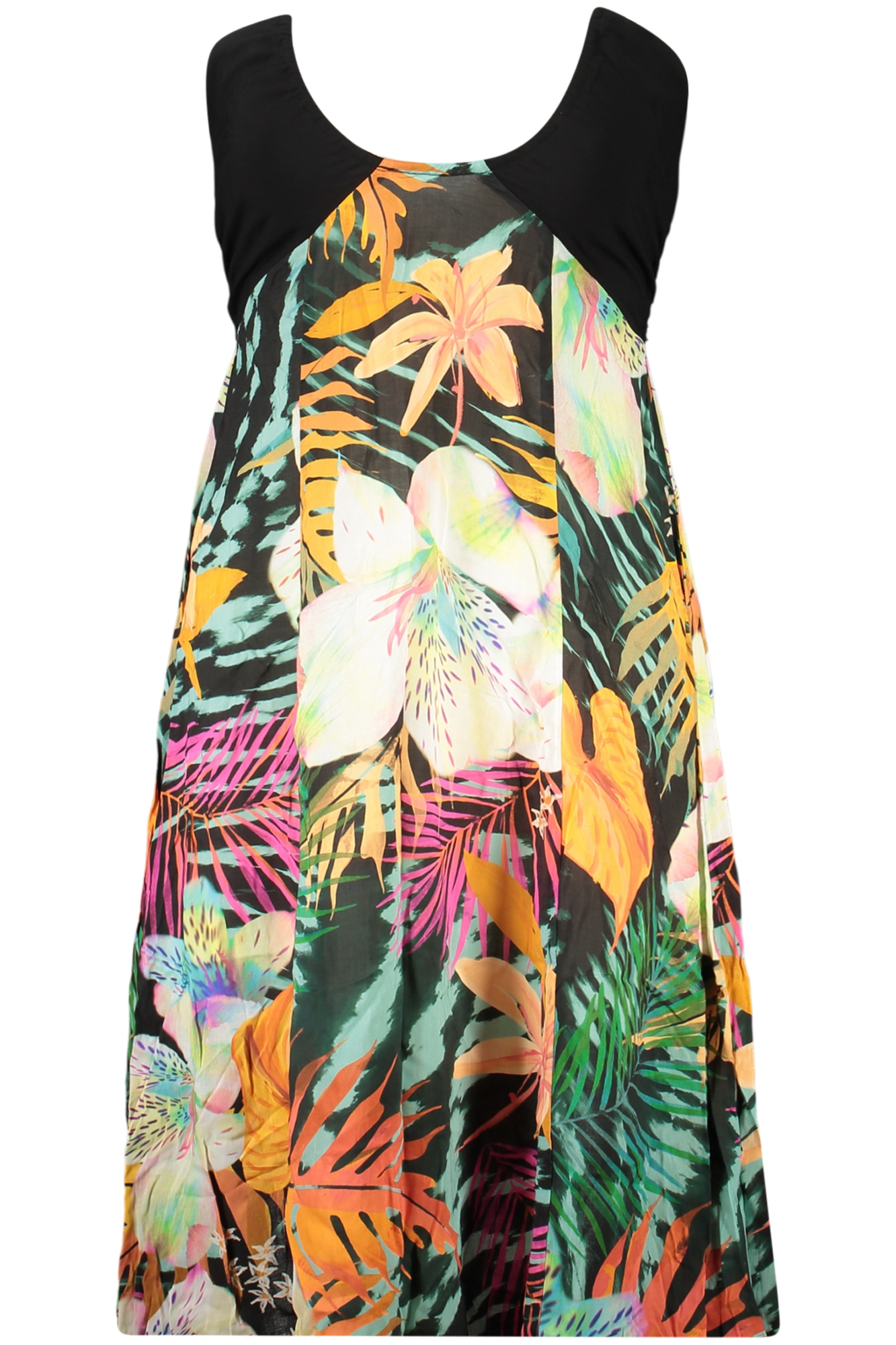 LONG PATTERNED DRESS, SWIM DAIKIRI CORD, V-NECK, BACK TIE, PRINT, LOGO
