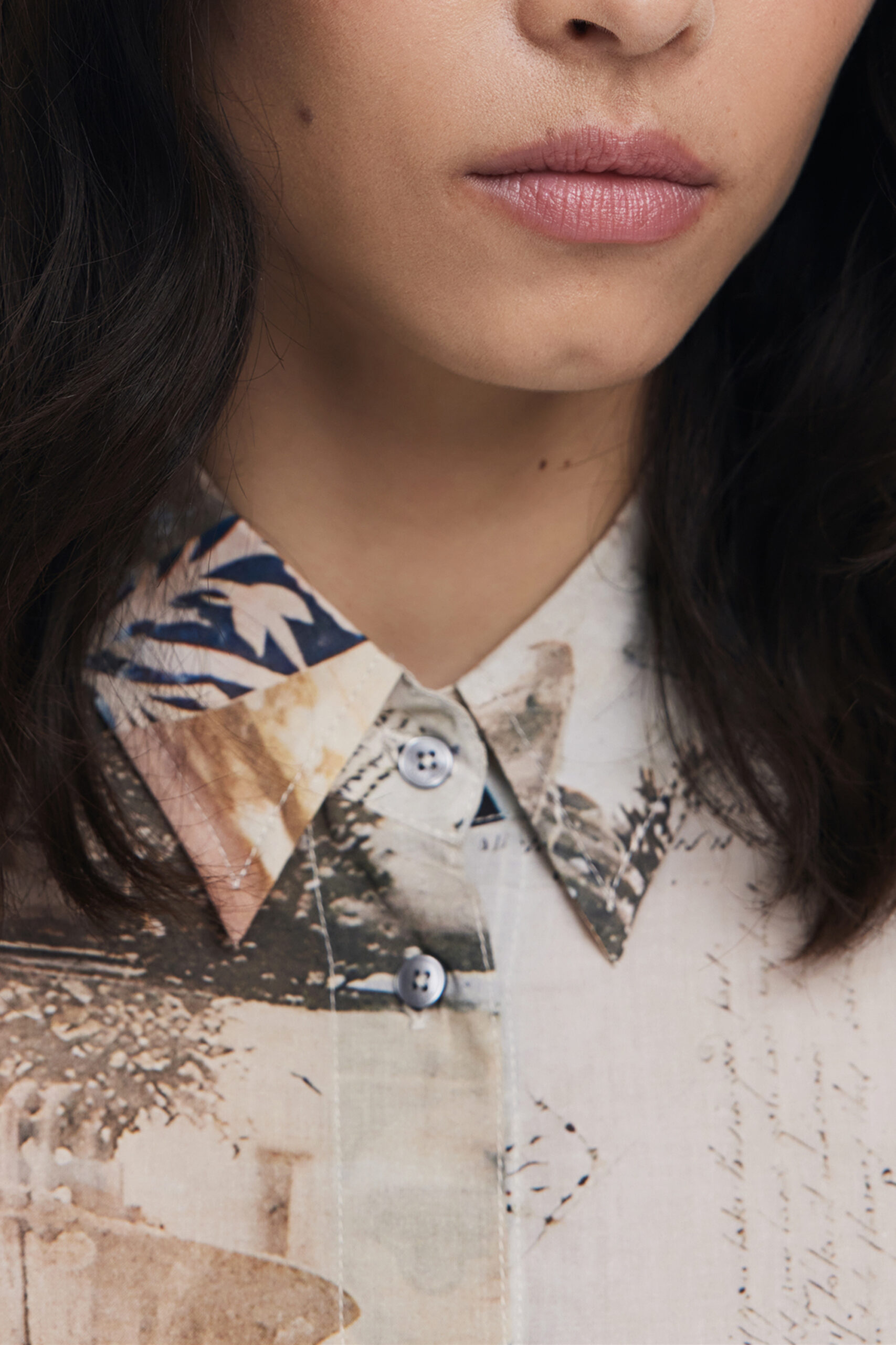 LONG-SLEEVED SHIRT, PHOTOPOSTAL, ITALIAN COLLAR, 2-BUTTON CUFFS, PRINT, BUTTONS, LOGO