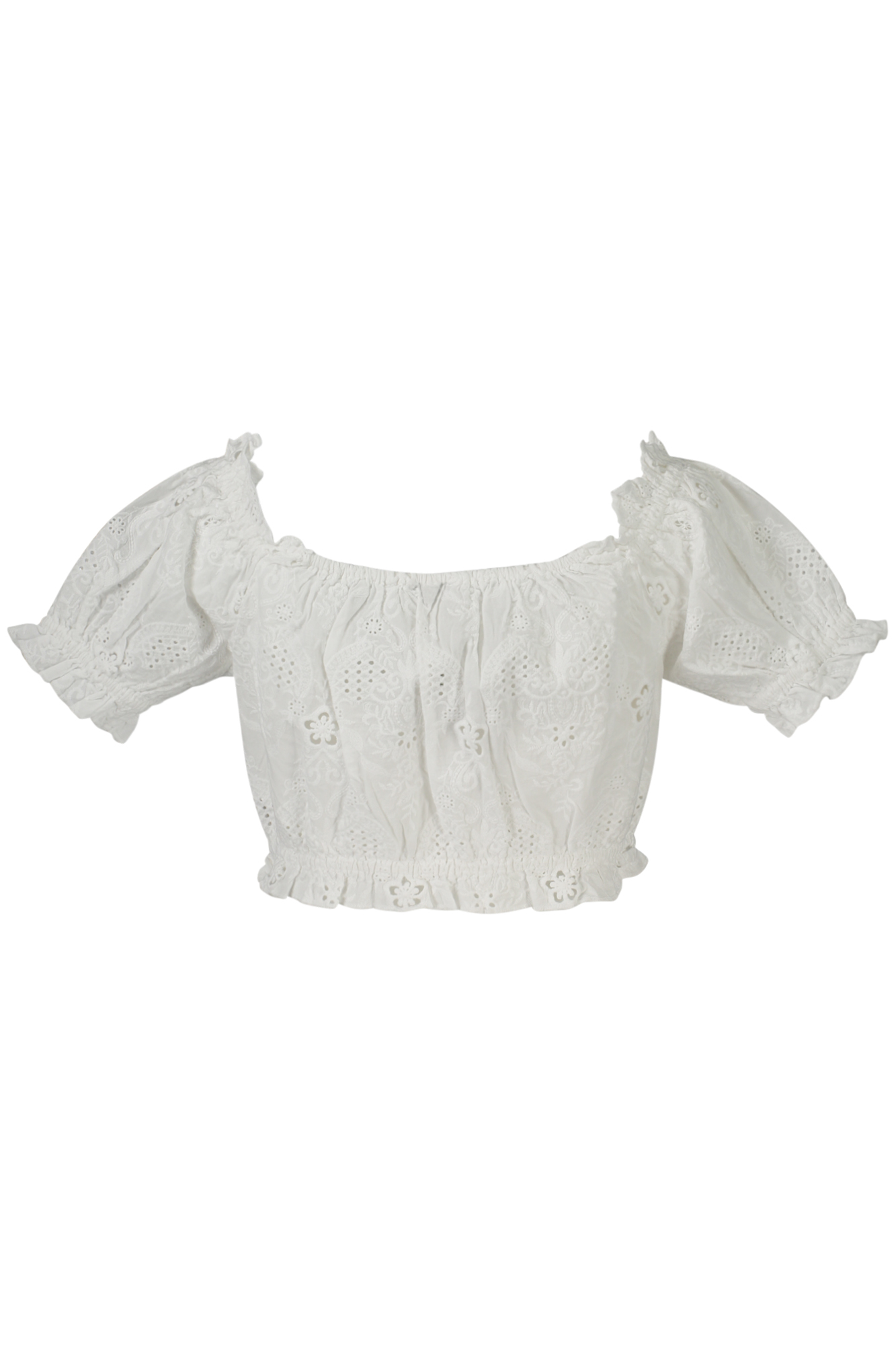 TOP WITH SHORT SLEEVES, BOAT NECKLINE, ELASTIC WAIST, CONTRASTING DETAILS, LOGO