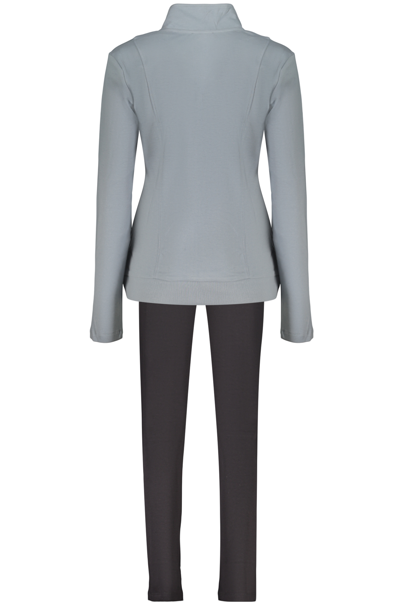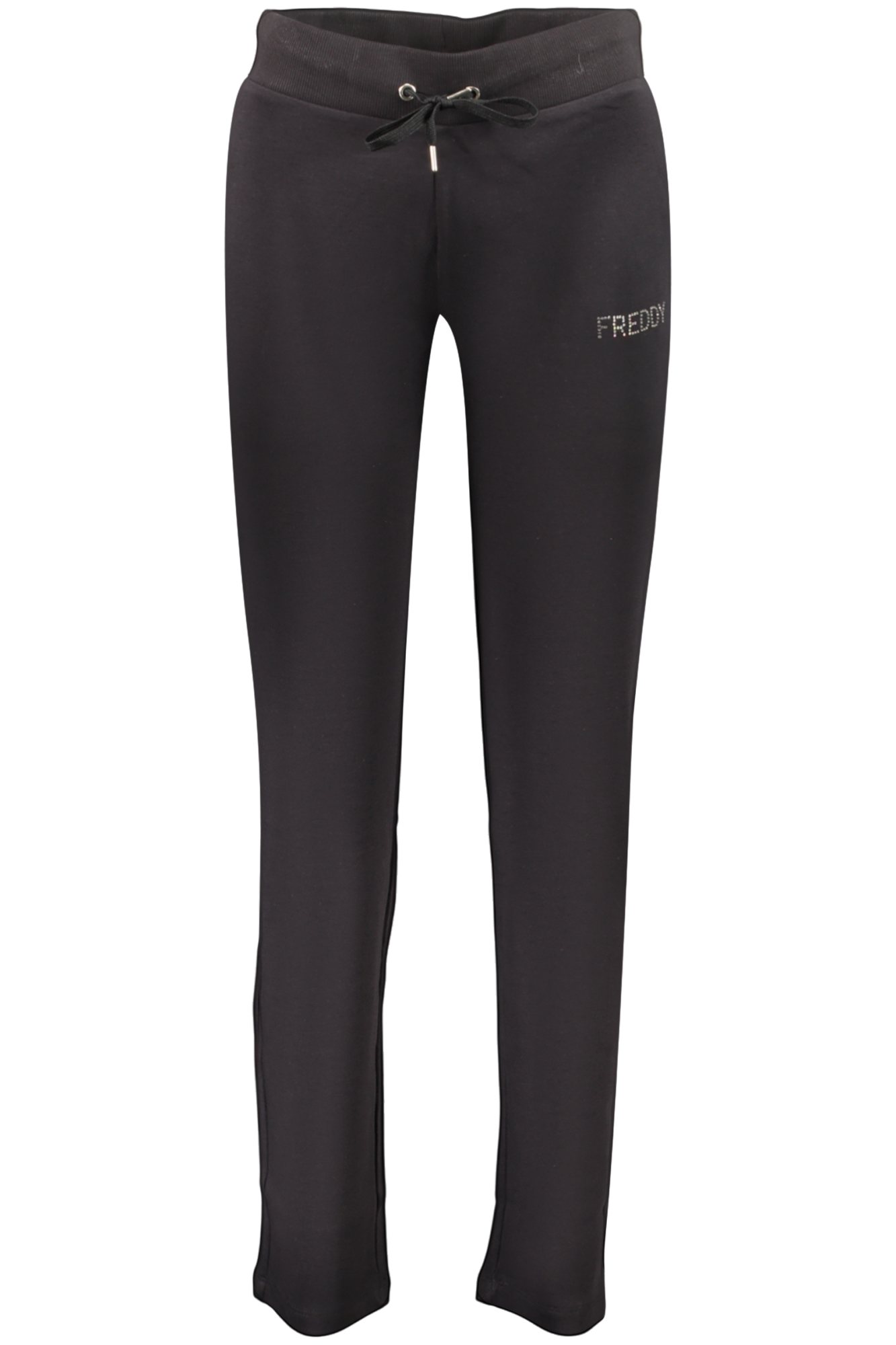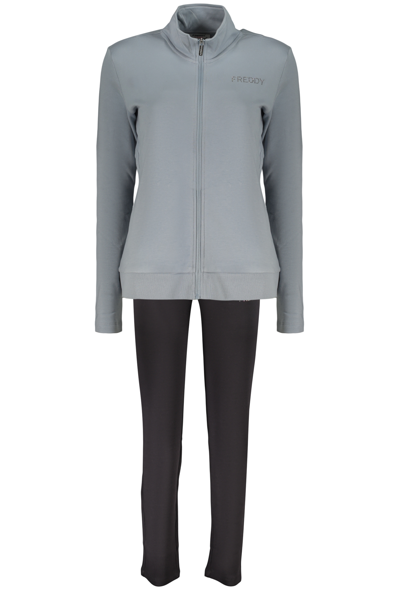 SWEATSHIRT AND TROUSERS SET, BLUE LONG-SLEEVED SWEATSHIRT, 2 POCKETS, ZIP, BLACK SPORTS TROUSERS, ELASTIC WAIST WITH LACES, RHINESTONE APPLICATION, LOGO