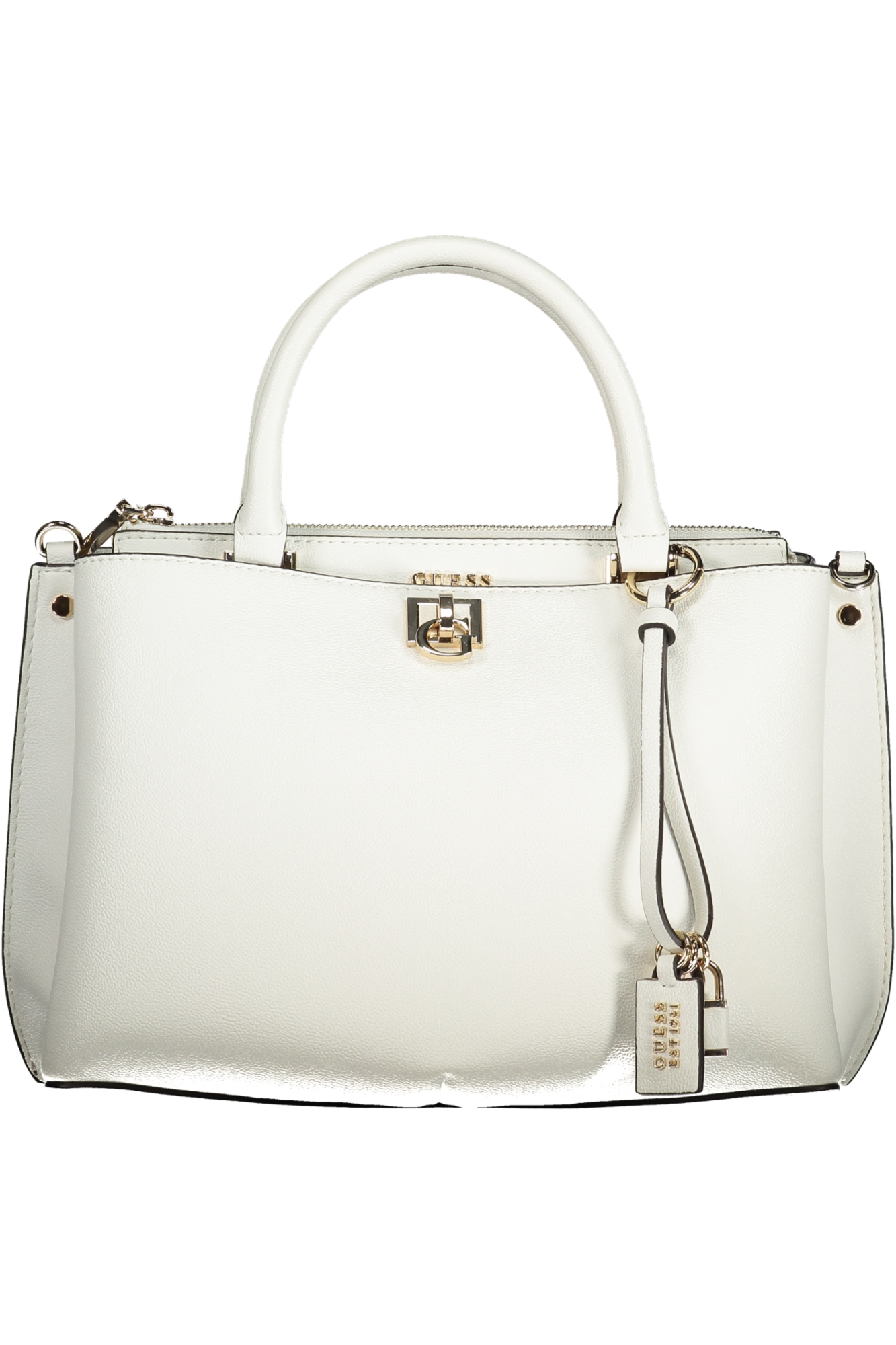 WHITE BAG, 2 HANDLES, ADJUSTABLE AND REMOVABLE SHOULDER STRAP, 1 EXTERNAL POCKET, 3 COMPARTMENTS, 1 INTERNAL POCKET, INTERNAL PHONE SPACES, REMOVABLE KEY RING, ZIP AND SNAP CLOSURE, PROTECTIVE FEET, LOGO