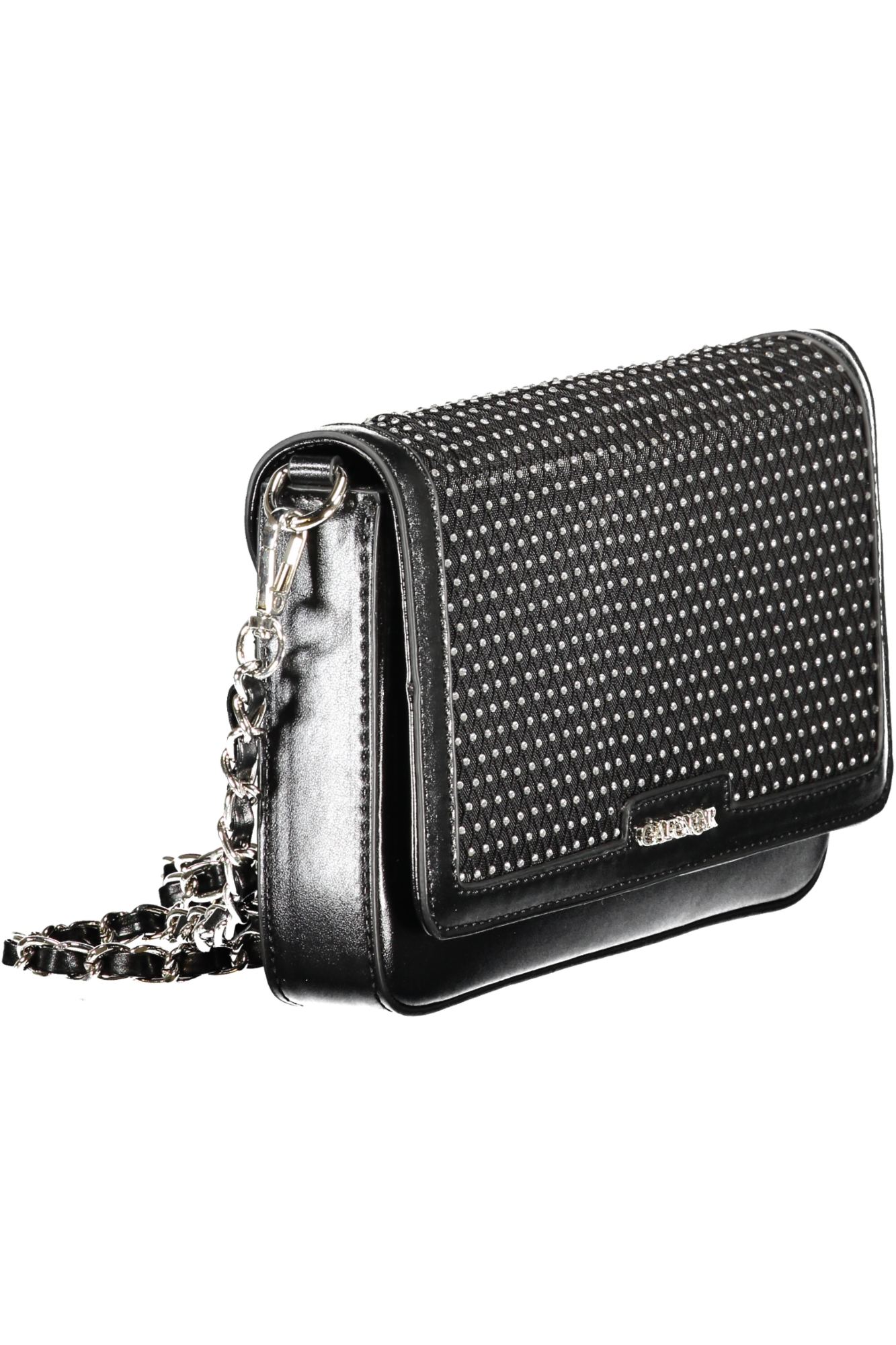 BAG, REMOVABLE CHAIN SHOULDER STRAP, 2 INTERNAL POCKETS, RHINESTONE APPLICATION, SNAP CLOSURE, LOGO