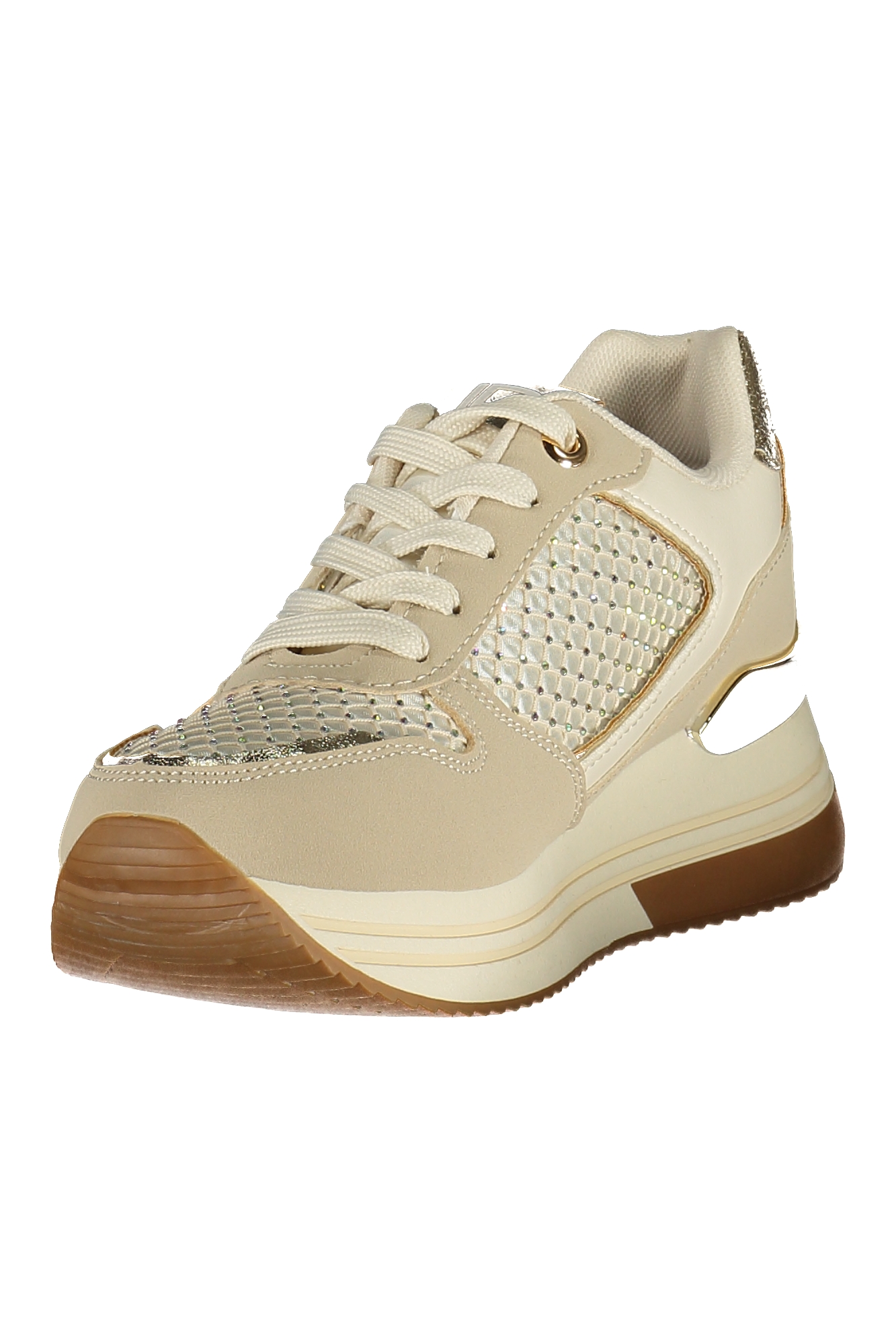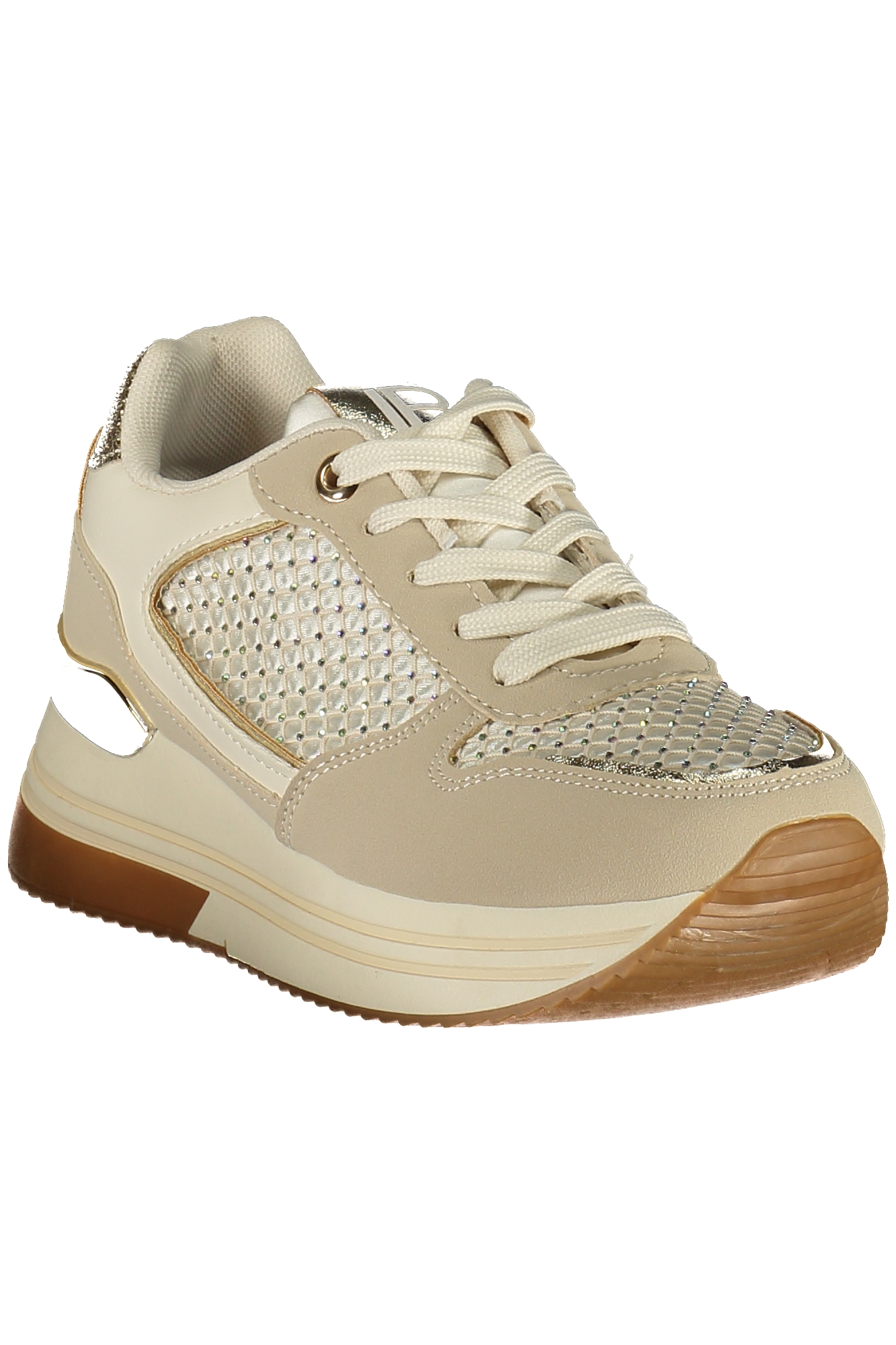 SPORTS SHOE WITH LACES, CONTRASTING GOLD AND IVORY DETAILS, RHINESTONE APPLICATIONS, LOGO