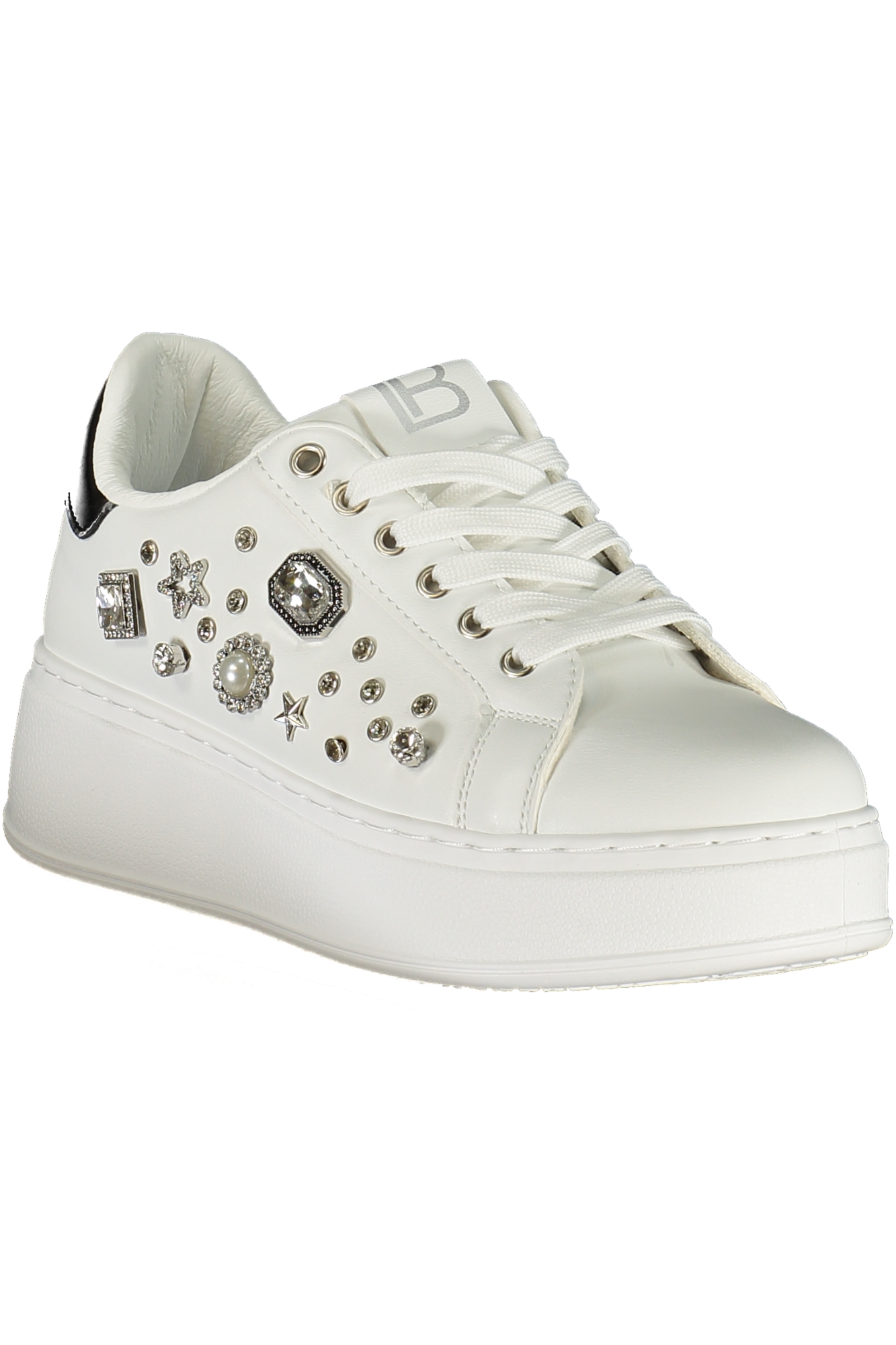 SPORTS SHOE WITH LACES, CONTRASTING BLACK DETAILS, RHINESTONE APPLICATIONS, LOGO