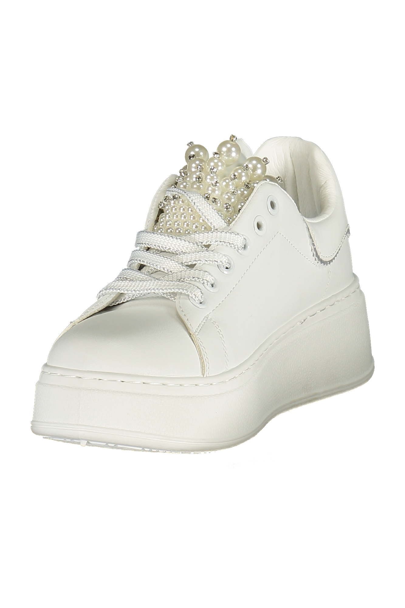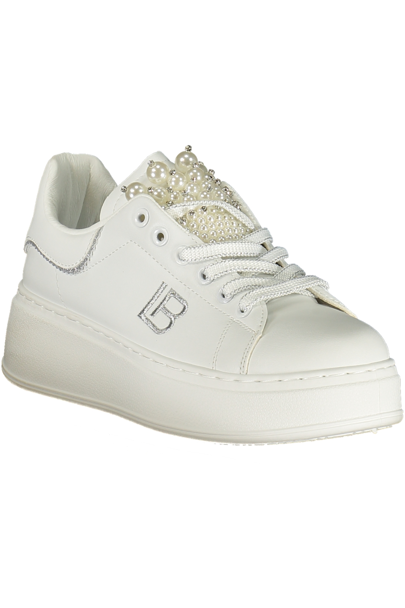 SPORTS SHOE WITH LACES, CONTRASTING DETAILS, PEARL APPLICATIONS, EMBROIDERY, LOGO