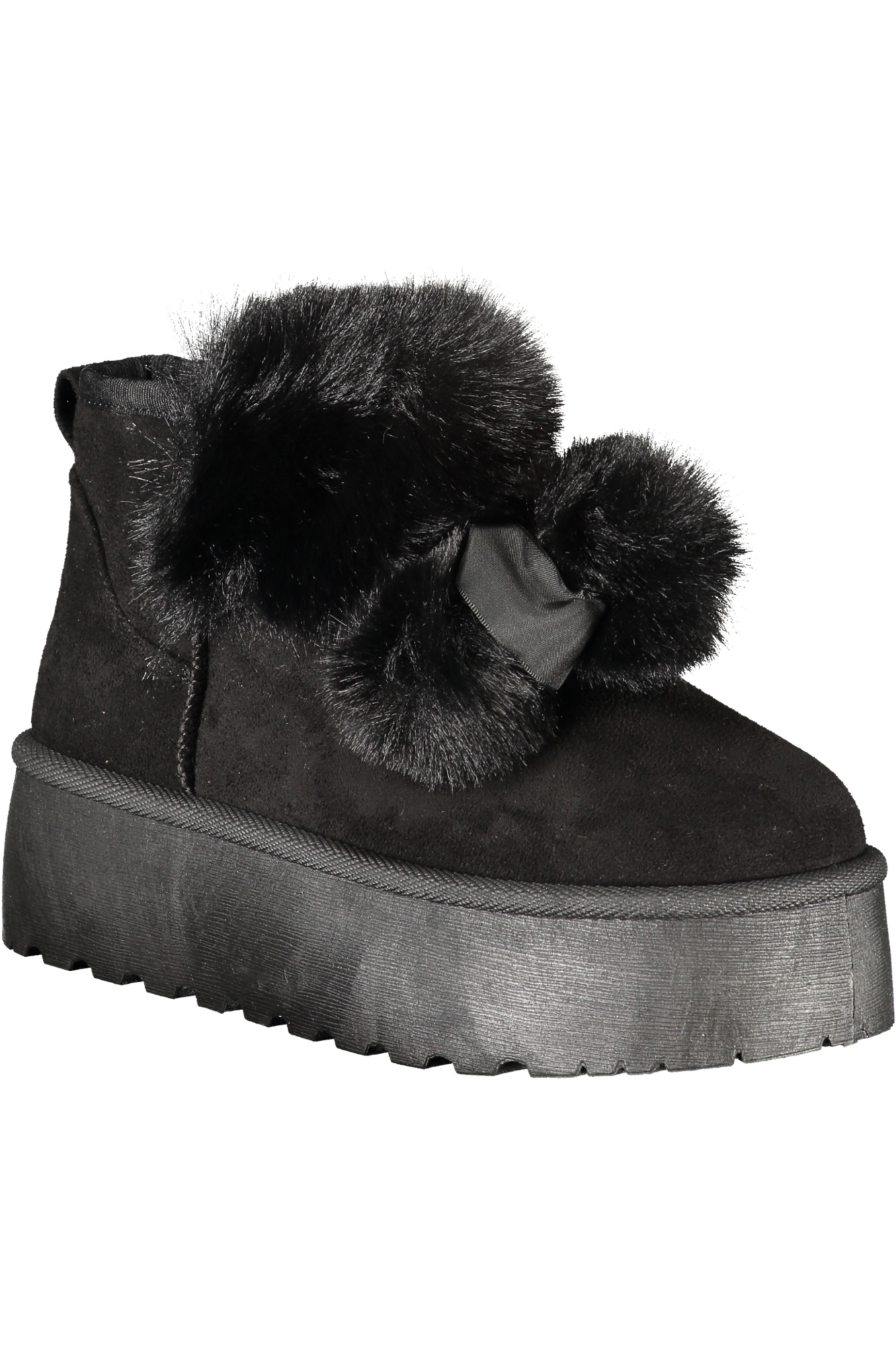 ANKLE BOOT WITH FUR, POM POM, 4 CM WEDGE, EMBROIDERY, LOGO