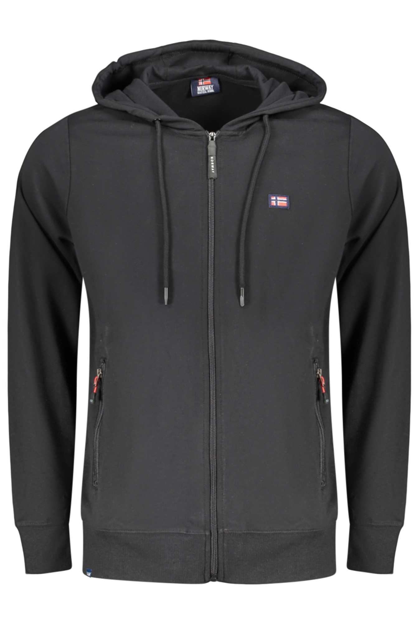 LONG-SLEEVED HOODED SWEATSHIRT, BRUSHED, 2 ZIP POCKETS, ZIP, APPLIQUE, LOGO