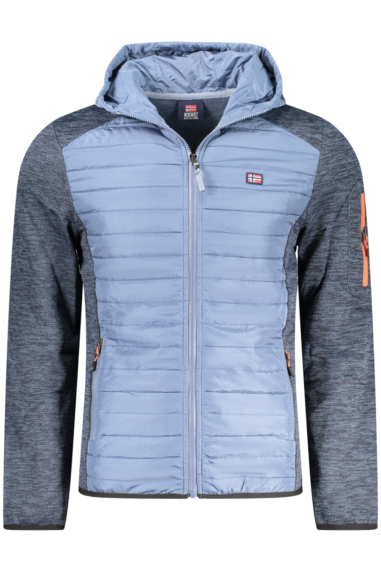 LONG-SLEEVED JACKET WITH HOOD, 2 EXTERNAL POCKETS, 2 INTERNAL POCKETS, 1 POCKET ON THE LEFT ARM, CONTRASTING DETAILS, ZIP, APPLICATION, LOGO