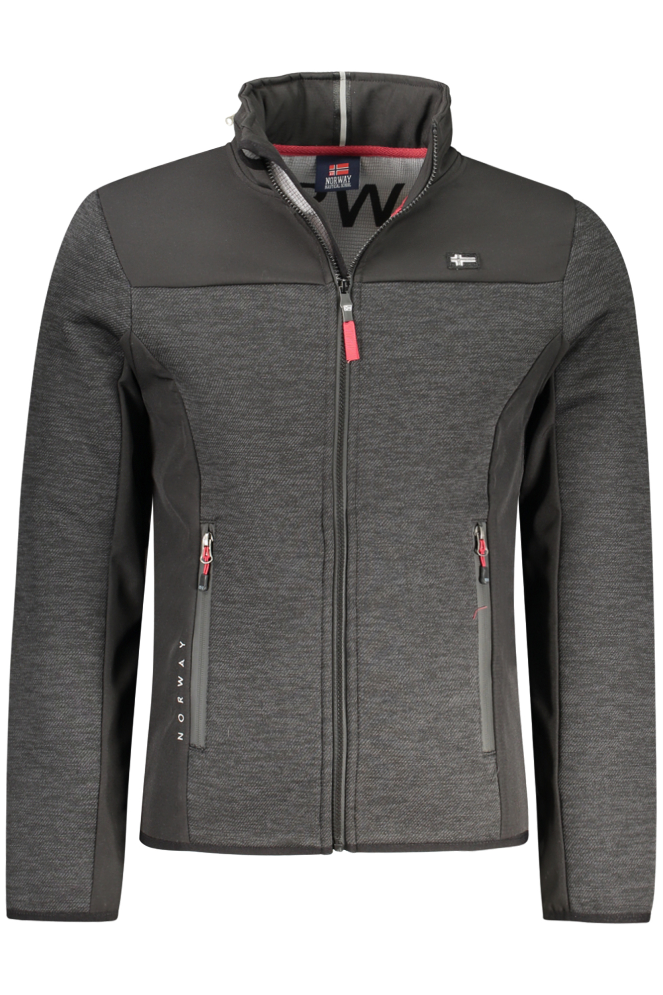 LONG-SLEEVED JACKET WITH REMOVABLE HOOD, 2 INTERNAL POCKETS, 2 EXTERNAL POCKETS, CONTRASTING DETAILS, ZIP, GREY APPLICATION, LOGO