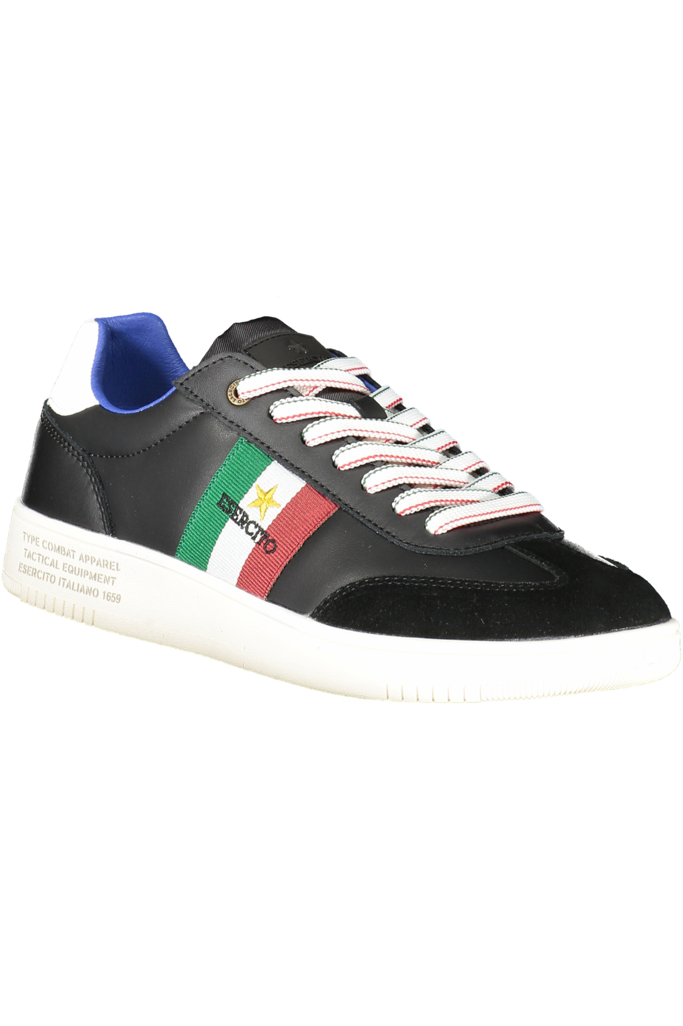 SPORTS SHOE WITH LACES, BLACK ARMY, CONTRASTING DETAILS, PRINT, LOGO