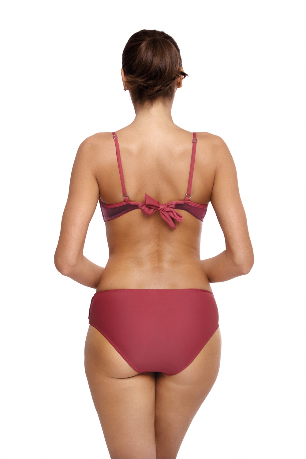 Iets totaal anders! Dit sexy en zeer elegante zwempak is gemaakt van Italiaanse stof die lijkt op zacht velours. Het heeft een prachtige, parelmoerachtige glans en ziet er prachtig uit, voegt onmiddellijk charme toe, verleidt het oog en siert het lichaam op prachtige wijze. Push-up bh met voorgevormde, gewatteerde cups met beugel in klassieke, beproefde, zeer goede constructie – maakt het mogelijk de borsten op te vangen, te liften en optisch te vergroten. Push-up is inbegrepen in elke maat van het badpak en is niet verwijderbaar van het model. De bandjes zijn verstelbaar, het circuit is comfortabel naar achteren geknoopt. Nette slip met bandje aan de voorkant. Veel fascinerende kleuren om uit te kiezen. Bestel het en kijk zelf maar. We bevelen het voor 100% aan.