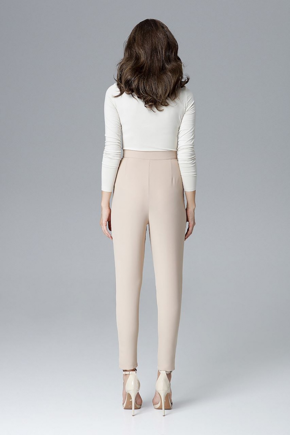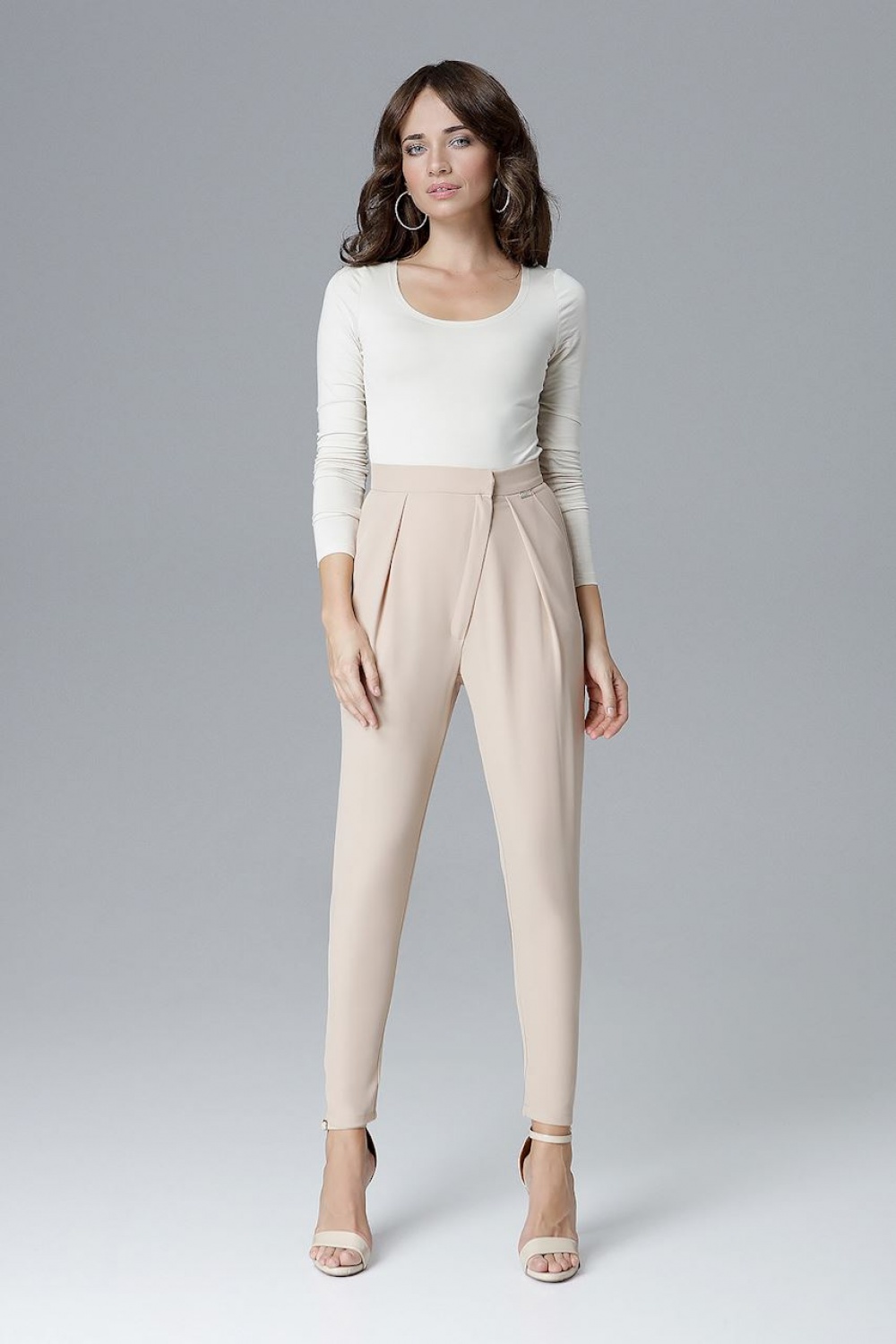 Elegante broek met een losse snit, afgewerkt met indrukwekkende vouwen. Het model benadrukt perfect de taille.