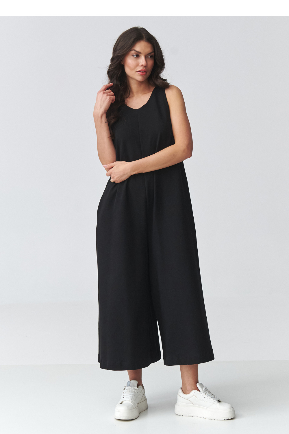 Unieke damesoverall die minimalisme, comfort en tijdloze elegantie combineert. Deze lange overall met wijde pijpen is een ideale optie voor vrouwen die de vrijheid van beweging en een modieuze, moderne stijl waarderen. De losse pasvorm valt mooi om het lichaam, benadrukt de sterke punten en biedt de hele dag comfort. Het model heeft een klassieke, gesloten halslijn en zorgvuldig afgewerkte details die het een universeel karakter geven. Dankzij deze elegante damesoverall is het geschikt voor zowel alledaagse als meer formele styling voor werk, vergaderingen of familiefeesten. Voeg gewoon de juiste accessoires toe om een modieuze en samenhangende look te creëren. De wijde pijpen geven het silhouet lichtheid en passen in de huidige trends. Het is een uitstekend alternatief voor een jurk, een overall voor dagelijks gebruik en speciale gelegenheden waarmee je je stijl kunt laten opvallen terwijl je comfort behoudt.