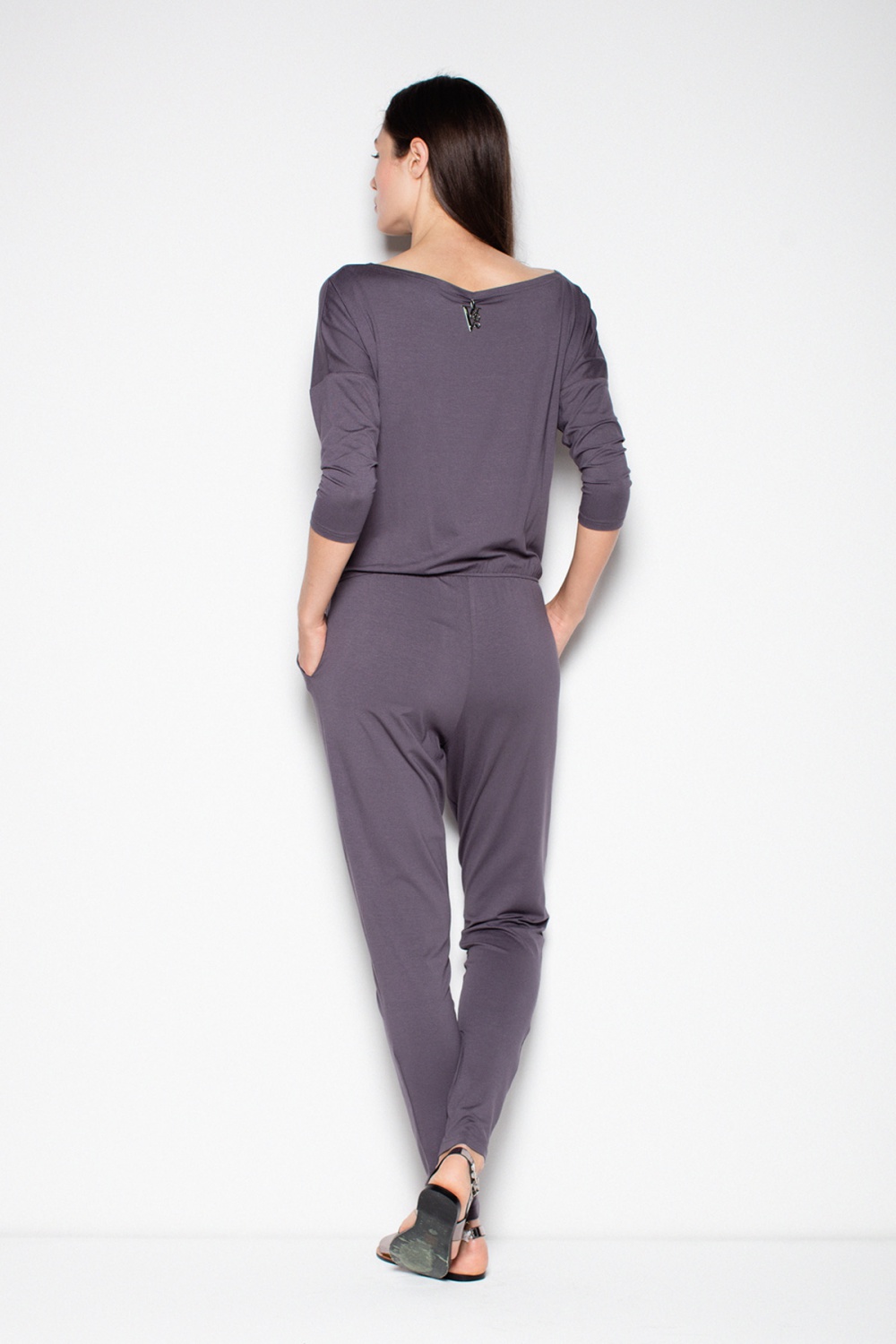 Sportieve jumpsuit met een halfronde halsuitsnijding en afhangende mouwen, in de taille afgesneden. Klassieke snit.