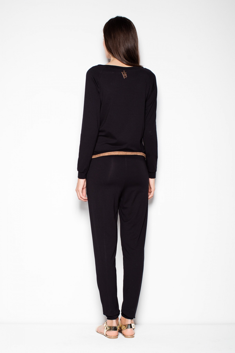 Chique jumpsuit met lange mouwen en lange pijpen. Het is voorzien van een zak en een riem in een contrasterende kleur. Zeer comfortabel en tegelijkertijd uiterst elegant.