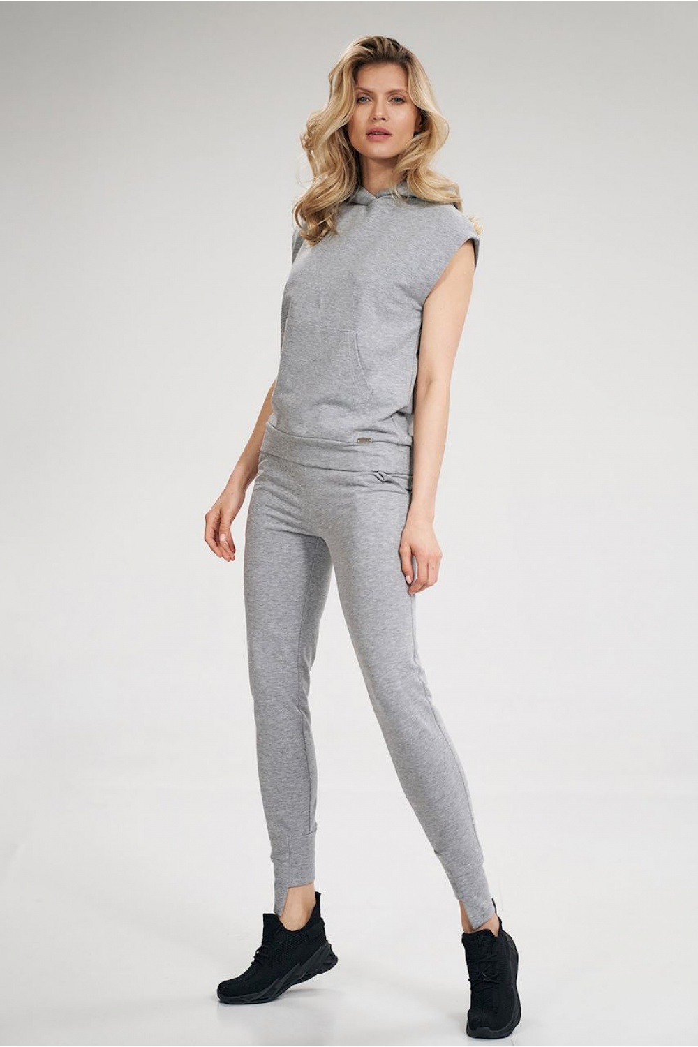 Katoenen joggingbroek met asymmetrische ribbels onderaan de pijpen. Met zakken, brede elastische band in de taille.