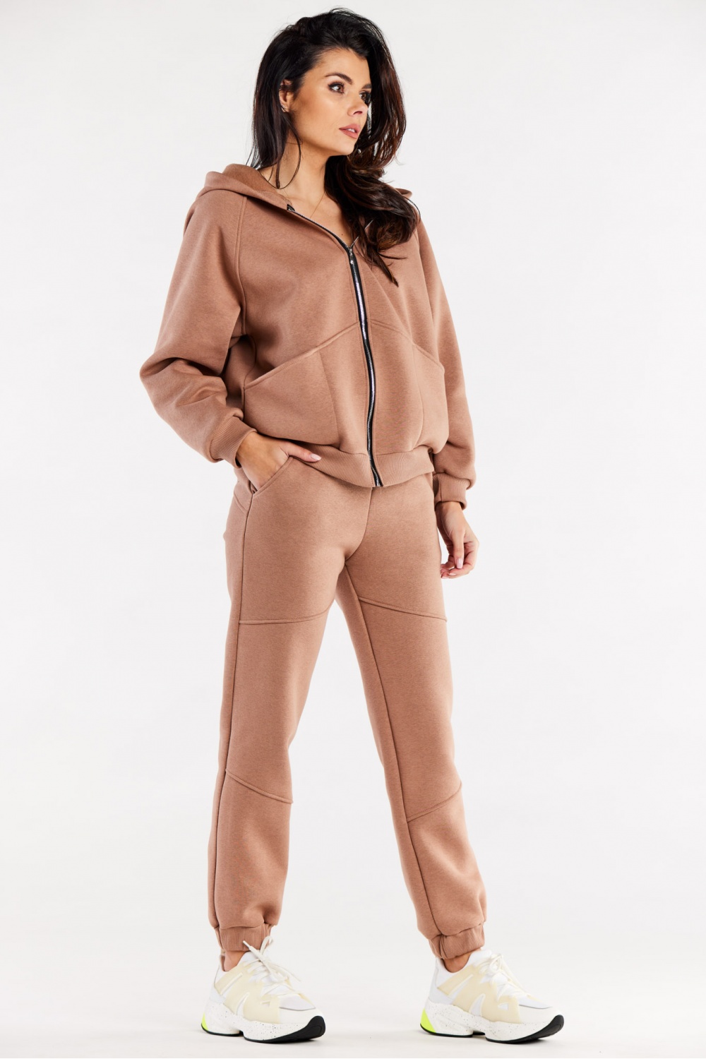 Losvallende joggingbroek met decoratieve stiksels op de voorkant van de pijpen, met een ingenaaide elastische tailleband. Insteekzakken aan de zijkanten. Pijpen met geribde boorden.