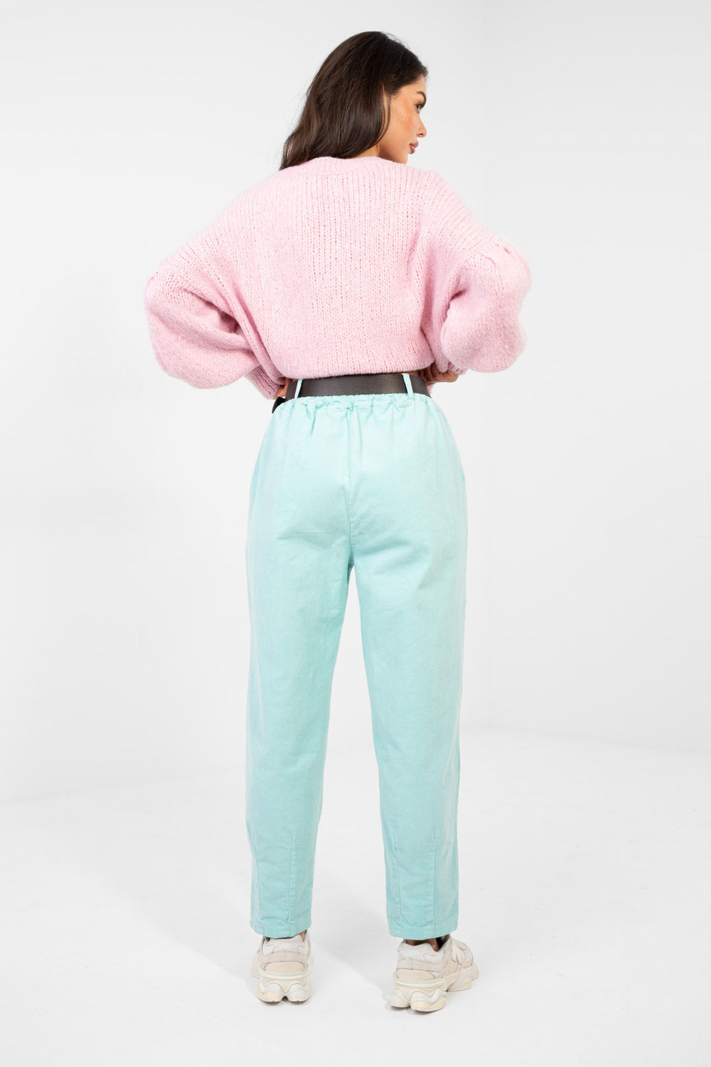 Stijlvolle corduroy broek in wortelvorm is een uitstekend voorstel voor dagelijks gebruik en voor op het werk. De casual uitstraling in combinatie met elegante details zorgt ervoor dat het model perfect past bij stedelijke outfits. Het gladde patroon benadrukt het tijdloze karakter van de broek en vergemakkelijkt het combineren ervan met verschillende kledingstukken. Het model met hoge taille benadrukt mooi de taille, terwijl de elastische band in de taille zorgt voor een comfortabele pasvorm. Een extra voordeel is de sluitbare riem die het geheel een stijlvolle afwerking geeft. De smal toelopende pijpen en de decoratieve plooien aan de voorkant geven de broek een modieus, licht elegant karakter en laten de silhouet optisch slanker lijken. De broek is gemaakt van een aangename mix van katoen met elasthaan, wat zorgt voor comfortabel dragen en bewegingsvrijheid. De zijzakken vergroten de functionaliteit van het model. Dit is een comfortabel en stijlvol voorstel voor vele dagelijkse gelegenheden.
