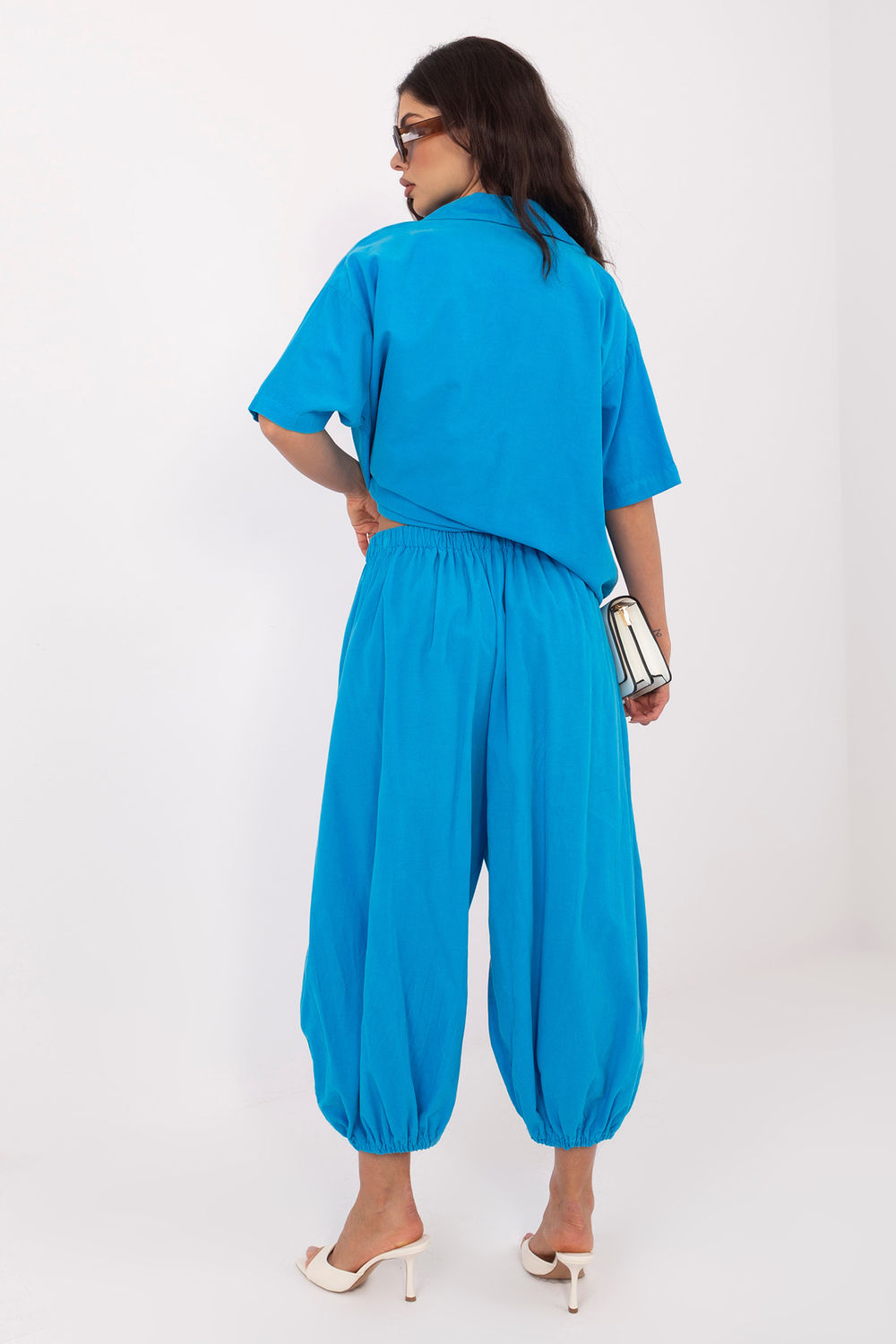 Stijlvolle damescordspijkerbroek met een trendy parachute-pasvorm, die perfect past in casual, dagelijkse stijlen. De gladde stof geeft ze een universeel karakter, waardoor ze gemakkelijk zijn aan te passen aan verschillende garderobe-elementen. Gemaakt van hoogwaardig katoen, voelen ze prettig aan en bieden ze draagcomfort de hele dag. De hoge taille en de elastische band zorgen voor een comfortabele pasvorm en accentueren de taille. De 7/8-broekspijpen, afgerond met elastische boorden, geven de totale look een moderne, sportieve-stedelijke stijl. Een extra voordeel zijn de praktische zijzakken die de functionaliteit van de broek verhogen.