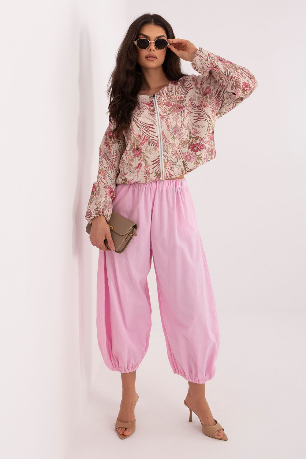 Stijlvolle damescorduroy broek met een trendy parachute silhouet, die perfect passen in casual, dagelijkse stijlen. De gladde stof geeft ze een universel karakter, waardoor ze gemakkelijk te combineren zijn met verschillende garderobe-elementen. Gemaakt van hoogwaardig katoen, zijn ze aangenaam aanvoelend en bieden ze comfortabel dragen de hele dag. De hoge taille en de elastiek in de taille garanderen een comfortabele pasvorm en accentueren de taille. De 7/8 broekspijpen zijn afgewerkt met elastieken en geven het geheel een moderne, sportieve stadsstijl. Een extra pluspunt zijn de praktische, ingenaaide zijzakken die de functionaliteit van de broek verhogen.