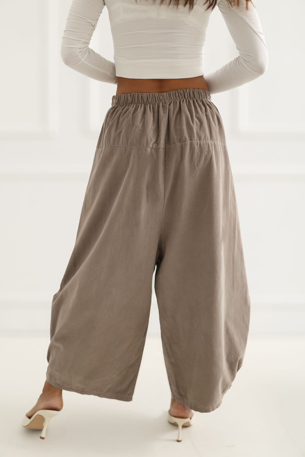 Dames fluwelen broek in een losse Aladdin-stijl, ideaal voor dagelijks gebruik. Gemaakt van zachte en aangename katoen, zorgen voor comfortabel dragen en ventilatie. Model met hoge taille en een elastische tailleband die zich aanpast aan de silhouet en comfort gedurende de hele dag garandeert. Wijde broekspijpen van 7/8 lengte geven lichtheid en een modieus karakter aan het geheel. Broek in een effen patroon, zonder sluiting en zakken, wat hun minimalistische stijl en losse, niet-verplichtende look benadrukt.