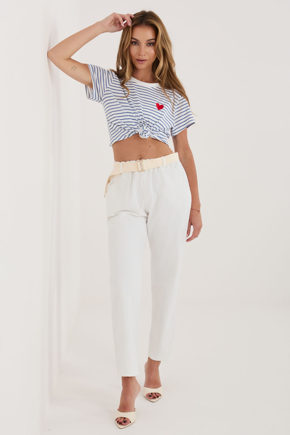 Dames corduroy broek in een trendy wortel model, ideaal voor dagelijks gebruik. Gemaakt van een hoogwaardige mix van katoen met een vleugje elastaan, zorgen voor comfort, elasticiteit en een goede pasvorm. Het model met een hoge taille en een elastische band in de taille zorgt voor draagcomfort, terwijl de extra gesp in de taille de taille accentueert en een stijlvolle afwerking toevoegt. De smal toelopende pijpen van 7/8 lengte geven het geheel een moderne uitstraling en verlengen optisch de benen. De broek met een glad patroon is voorzien van praktische insteekzakken aan de zijkant, en combineert functionaliteit met een minimalistische esthetiek.