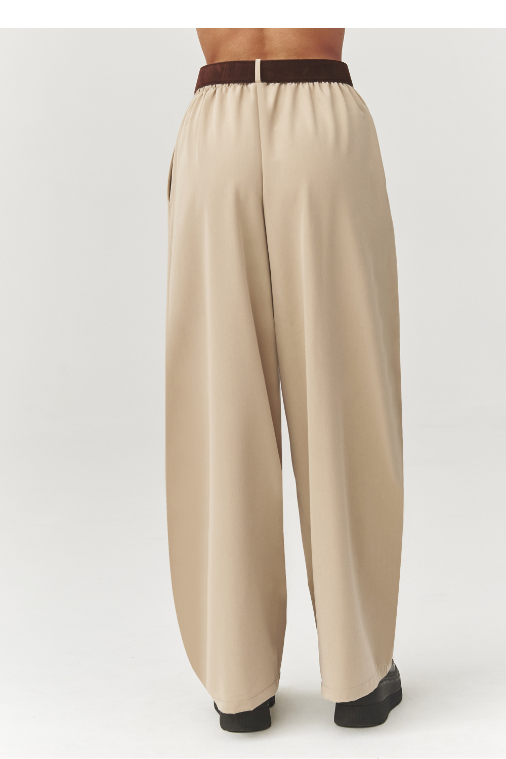 Voeg een vleugje elegantie en comfort toe aan je garderobe met onze wijde broek met hoge taille en plooien. Dit is een uitstekende keuze voor vrouwen die stijl en comfort waarderen. De broek is gemaakt van hoogwaardige stof die mooi valt en perfect is voor zowel dagelijks gebruik als meer formele styling. Dankzij de wijde pijpen en subtiele plooien verlengen de broek optisch het silhouet, en de decoratieve riem met gesp geeft ze een moderne uitstraling. Ze passen perfect bij een blouse, jasje of ruime trui. Dit is het perfecte model voor zowel werk als sociale bijeenkomsten, kies voor een veelzijdige, tijdloze snit en ingetogen kleuren die nooit uit de mode raken. Geproduceerd in Italiƫ.