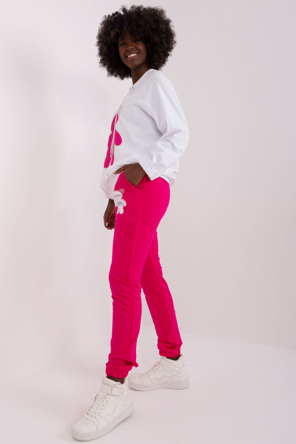 Trainingspakken bestaande uit een sweatshirt en een broek. Sweater met lange mouwen en ronde hals. Decoratieve teddybeerprint op de voorkant. Lange broek met tailleband en zakken.