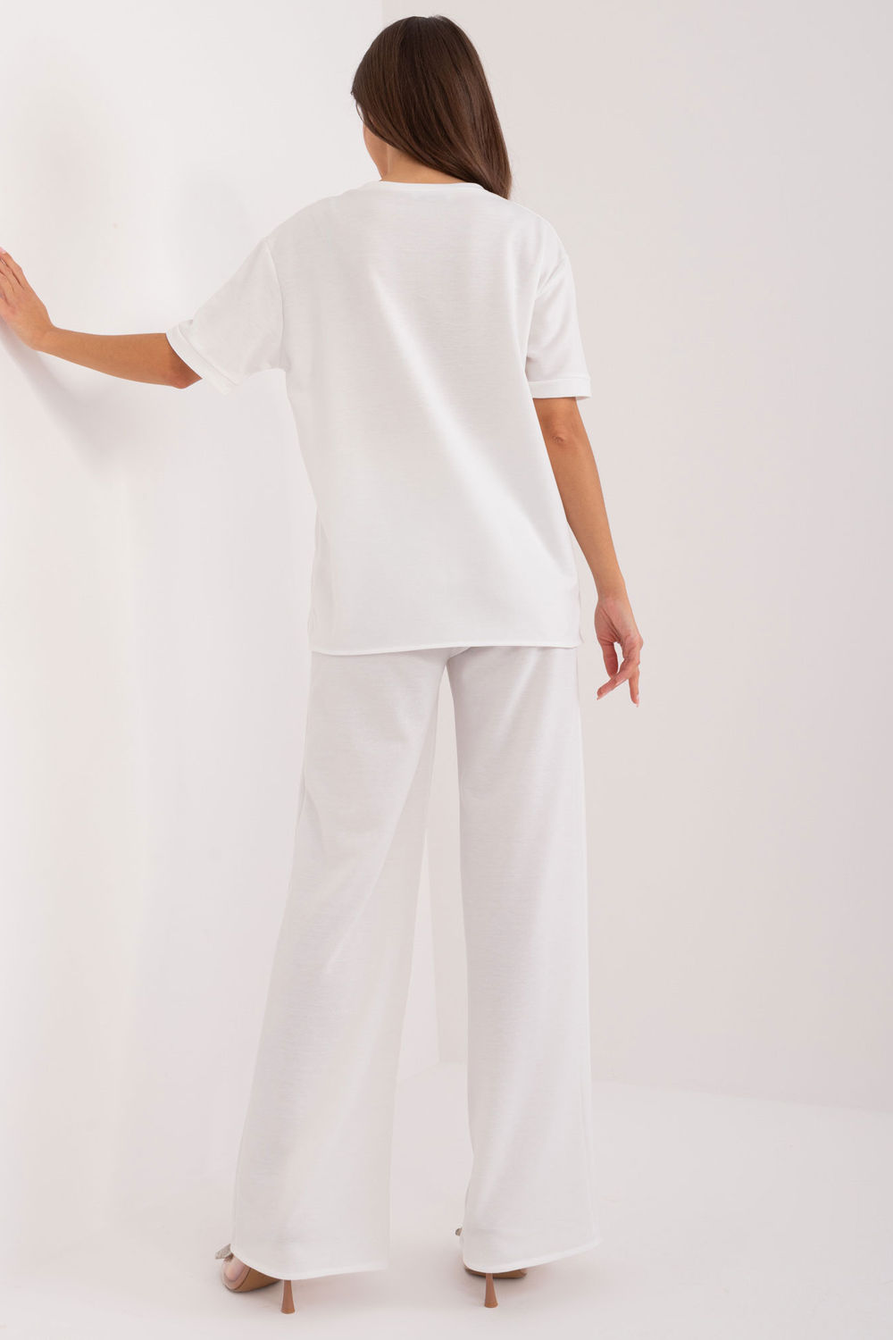 We presenteren een nieuwe dames set bestaande uit een elegante blouse en comfortabele broek. Deze set combineert stijl en comfort en is perfect voor zowel dagelijkse uitjes als voor op het werk. De blouse is gemaakt van hoogwaardig, glad materiaal dat elegantie en een tijdloos karakter toevoegt. De korte mouwen maken de blouse ideaal voor warmere dagen en zorgen voor bewegingsvrijheid. De klassieke ronde hals voegt een subtiele charme toe aan de blouse en past bij verschillende outfits. De decoratieve knopen aan de voorkant van de blouse voegen elegantie toe en vormen een stijlvol accent. De broek is voorzien van een praktische tailleband met trekkoord, waardoor deze perfect past en je taille benadrukt. Gemaakt van hetzelfde gladde, effen materiaal als de blouse, vormt deze een samenhangende en elegante set. De rechte pijpen maken de broek klassiek en veelzijdig, perfect te combineren met verschillende kledingstukken. De hoge taille zorgt voor comfort en een elegante uitstraling, terwijl het figuur wordt geaccentueerd. De praktische steekzakken aan de zijkant voegen functionaliteit toe zonder het elegante uiterlijk van de broek te verstoren. Deze dames set, bestaande uit een blouse en broek, is een uitstekende keuze voor vrouwen die comfort en stijl waarderen. Het gladde, effen materiaal en de klassieke details maken deze set perfect voor dagelijks gebruik en op het werk. Dankzij zorgvuldig gekozen elementen, zoals de decoratieve knopen op de blouse en het taillekoord van de broek, zie je er altijd elegant uit en voel je je comfortabel.