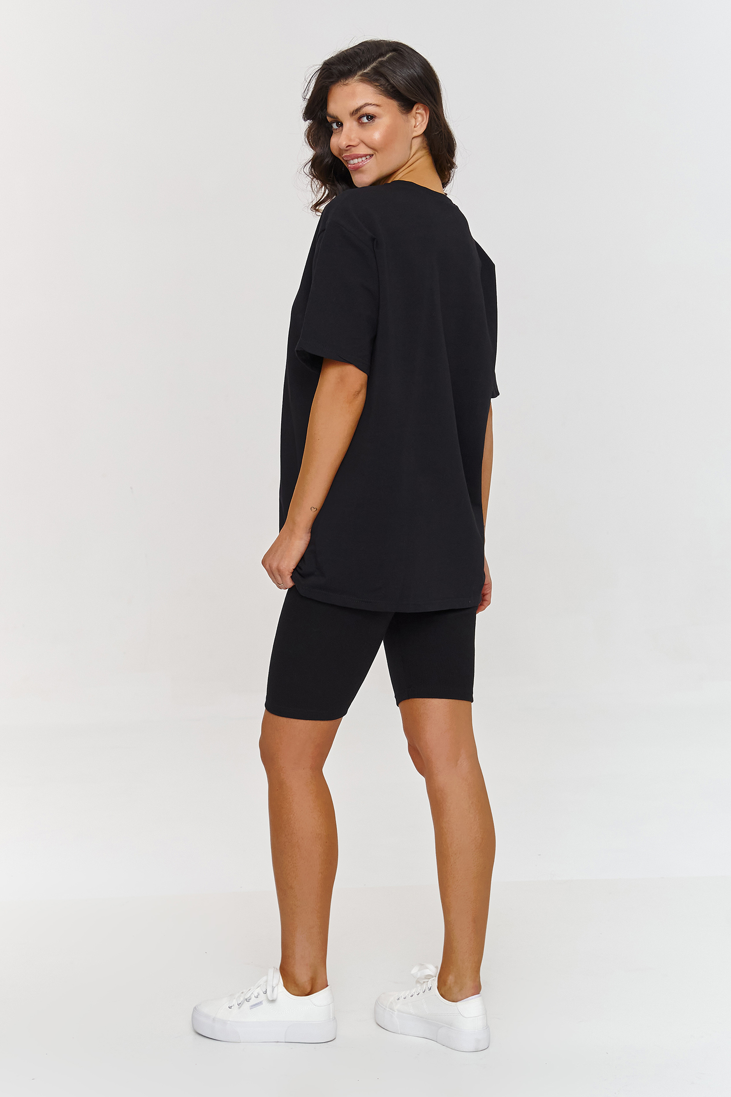 De klassieker in de beste uitvoering! Deze tweedelige set combineert een losse t-shirt met aansluitende coltruien, waardoor een minimalistische en stijlvolle outfit ontstaat. De geribbelde coltruien zijn een must-have voor de zomer. Ze passen perfect bij het silhouet, benadrukken de vormen, maar garanderen tegelijkertijd comfort dankzij het elastische materiaal. De lengte van de coltruien maakt ze comfortabel en ze passen perfect bij lossere t-shirts of tops. Het t-shirt in deze set heeft een oversized pasvorm, waardoor het volledige bewegingsvrijheid biedt. Korte mouwen en een ronde hals geven het een klassieke, universele uitstraling. De set is gemaakt van katoen met een vleugje elastaan, waardoor het flexibel is en perfect aansluit op het lichaam, met gegarandeerde vrijheid en comfort. De veelzijdigheid maakt het ideaal voor dagelijks gebruik, om thuis te ontspannen, voor fysieke activiteiten en voor uitstapjes in de stad of ontmoetingen met vrienden. Je kunt de hele katoenen set samen dragen of de afzonderlijke items combineren met andere kledingstukken. Het t-shirt past geweldig bij jeans of leggings, en de coltruien met een crop top creëren een sportieve look.