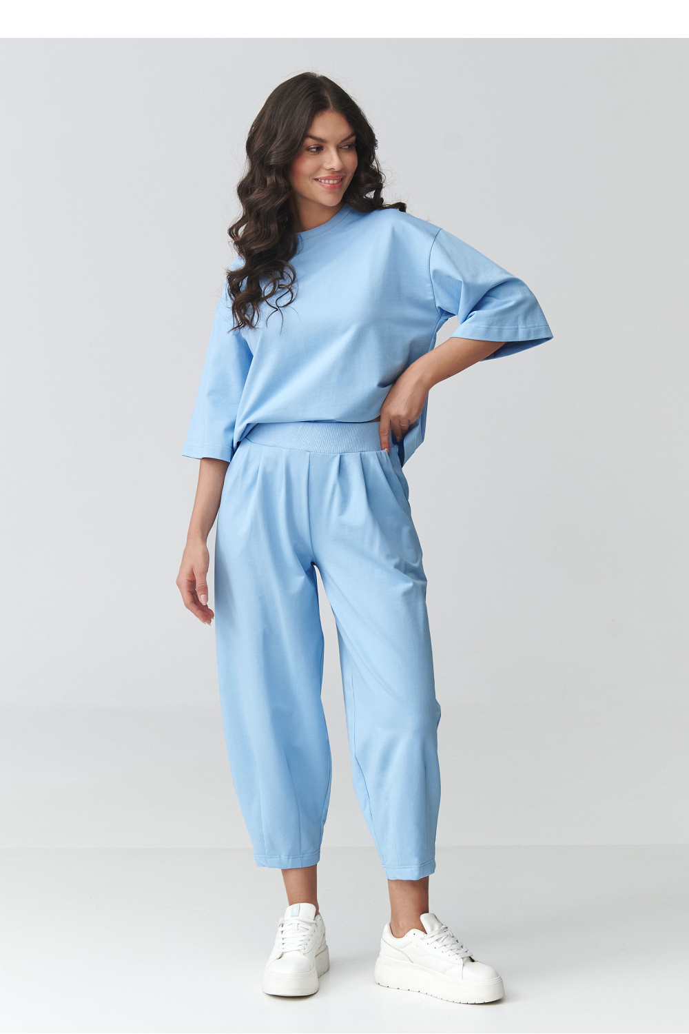 Stijlvolle dames trainingspak is een ideale keuze voor vrouwen die comfort en een modieuze uitstraling waarderen in hun dagelijkse outfits. De set bestaat uit een losse oversized blouse met korte mouwen en comfortabele broek met een elastische taille en zakken, die bewegingsvrijheid en een perfecte pasvorm bieden. Deze modieuze casual set is geschikt voor wandelingen, winkelen en informele bijeenkomsten. Het moderne ontwerp benadrukt de vrouwelijke silhouet en garandeert tegelijkertijd maximaal draagcomfort gedurende de hele dag. Dit is een uitstekende keuze voor vrouwen die op zoek zijn naar een combinatie van stijl en functionaliteit. Dankzij de universele snit past dit dames trainingspak perfect bij sneakers, waardoor het een modieuze en comfortabele outfit is voor elke gelegenheid. Het is een must-have in de garderobe van elke vrouw die premium dameskleding, comfort en tijdloos design waardeert.