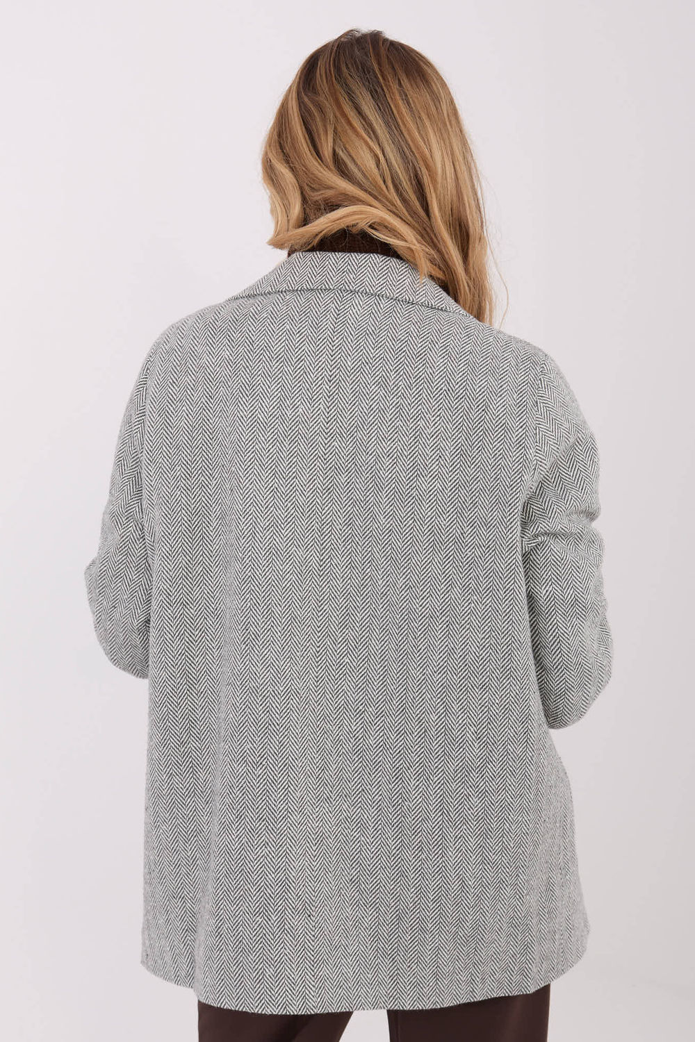 De klassieke damesblazer met een casual karakter, ideaal voor dagelijkse outfits en werk. Het dennenboompatroon geeft het een tijdloze elegantie, en de revers benadrukken de elegante pasvorm. Gemaakt van een mix van kasjmier en elastaan, de blazer is zacht, aangenaam om aan te raken en licht elastisch, wat zorgt voor comfortabel dragen gedurende de hele dag. Met een standaard lengte, lange mouwen en een dubbele rij knopen, ziet het er erg stijlvol uit, terwijl het toch bewegingsvrijheid behoudt. De blazer heeft praktische opgestikte zakken en een voering die zorgt voor een nette afwerking en draagcomfort. Door het ontbreken van voering is het perfect voor het herfst/winterseizoen als een elegant kledingstuk voor gelaagde outfits.