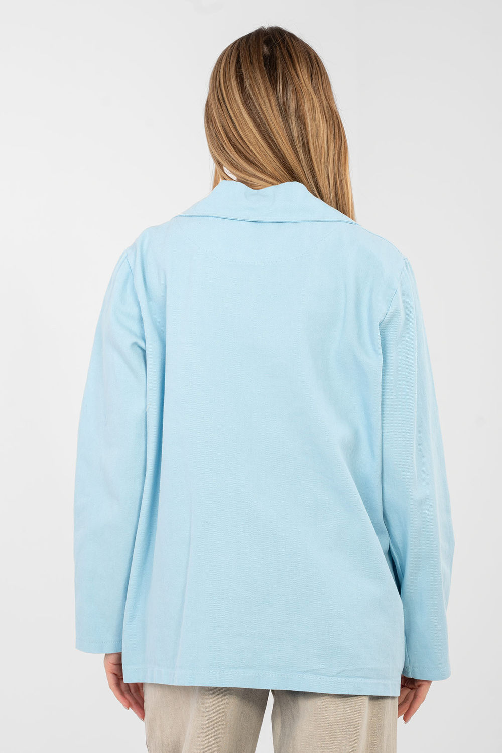 Casual damesblazer gemaakt van hoogwaardig katoen, ideaal voor dagelijkse styling. De denimstof geeft het een relaxte uitstraling en tegelijkertijd maakt het model tijdloos en veelzijdig. De blazer heeft een standaard lengte, lange mouwen en klassieke revers. Een bijzonder accent zijn de geborduurde bloemen aan de voorkant, die het geheel een vrouwelijke en originele uitstraling geven. Het model sluit met een knoop en heeft praktische zakken, combineert esthetiek met functionaliteit. Een uitstekende keuze voor dagelijks gebruik, zowel in combinatie met jeans als met een jurk of rok.