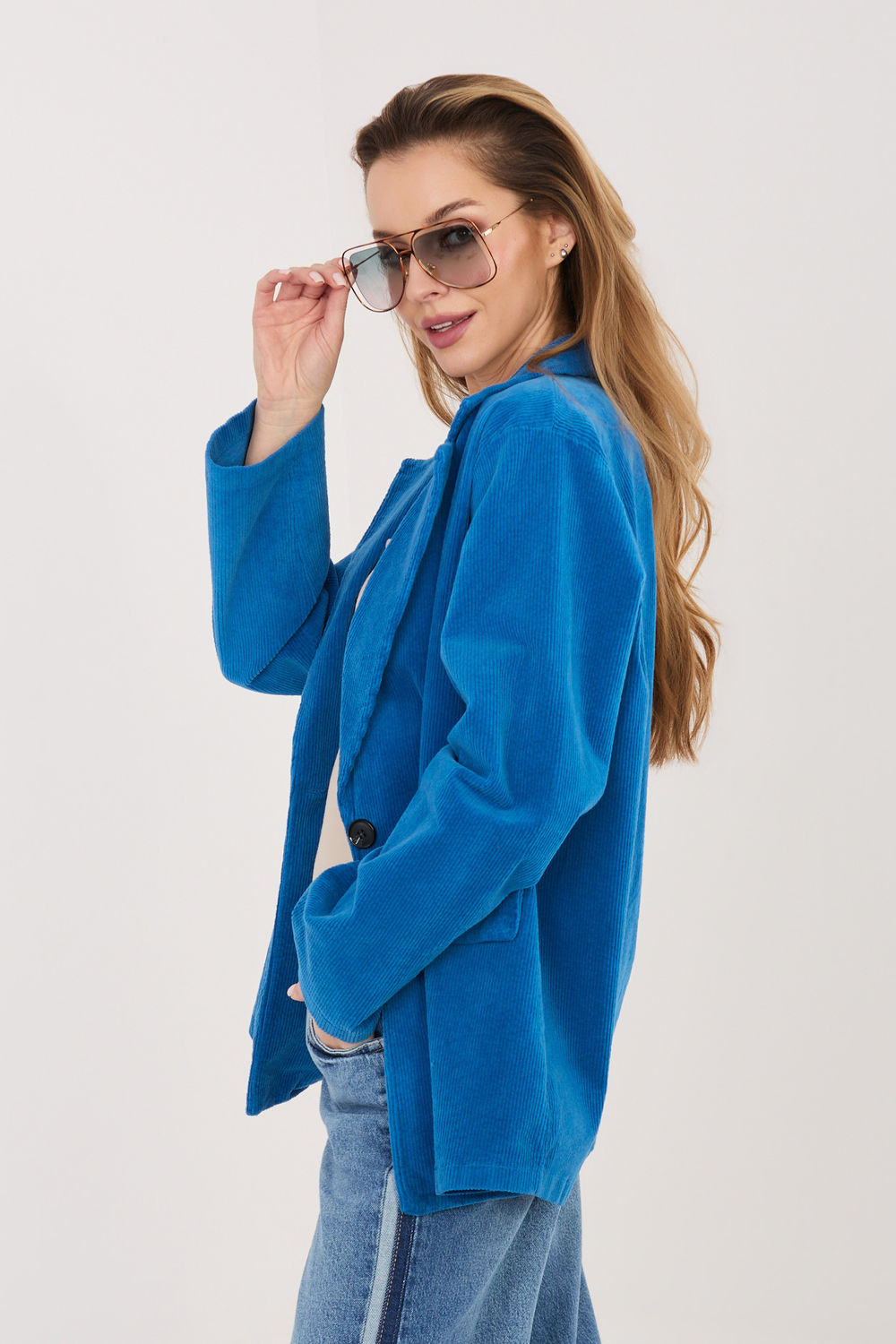 Een stijlvolle dames corduroy blazer in een casual uitvoering die perfect is voor zowel dagelijks gebruik als op het werk. Dit model combineert vrijheid met elegantie, waardoor je het gemakkelijk kunt combineren met verschillende outfits, van klassieke stoffen broeken tot jeans of een potloodrok. Gemaakt van hoogwaardig katoen met een vleugje elastaan, zorgt het voor comfortabel dragen en een subtiele elasticiteit, wat resulteert in comfort gedurende de hele dag. Het gladde patroon benadrukt het universele karakter ervan, terwijl de corduroy textuur subtiele structuur en een modieus accent toevoegt. Het model heeft lange mouwen en klassieke revers, die de blazer een tijdloze stijl geven. De standaard lengte valt mooi op het silhouet, en de enkele knoopsluiting benadrukt het elegante ontwerp. De imitatiezakken vormen een esthetische afwerking, met behoud van het minimalistische karakter van het ontwerp. Dit is een ideale keuze voor vrouwen die comfort, stijl en functionaliteit waarderen in hun dagelijkse en kantooroutfits.