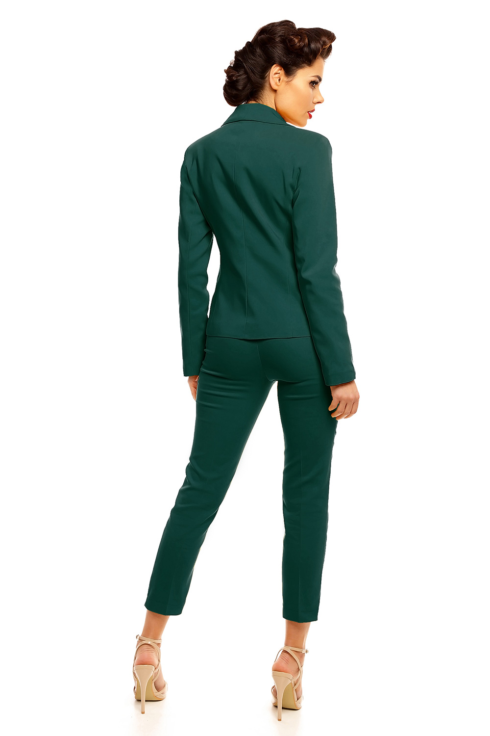 Eenvoudig en elegant jasje met een enkele knoop in het midden. De halslijn is een diepe puntige kraag. Decoratieve patches die zakken imiteren aan de zijkanten aan de voorkant. Perfect voor overgangsseizoenen. Katoen gevoerde jas zal geschikt zijn voor zakelijke bijeenkomsten en familie-evenementen in de herfst en lente.