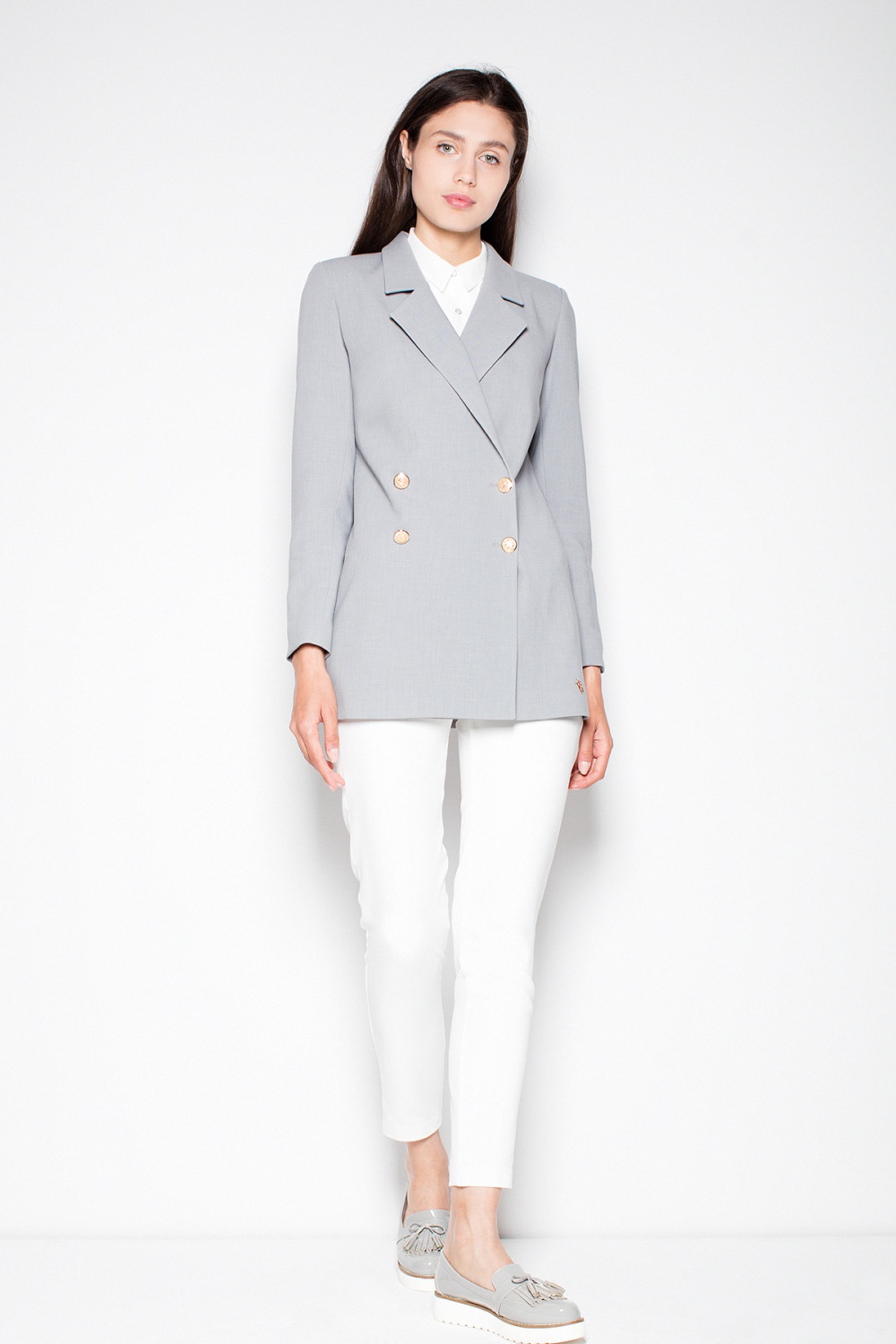 Bescheiden maar zeer elegant jasje met lange mouwen en knoopsluiting. Decoratieve knopen op de mouwen, past perfect op het lichaam.