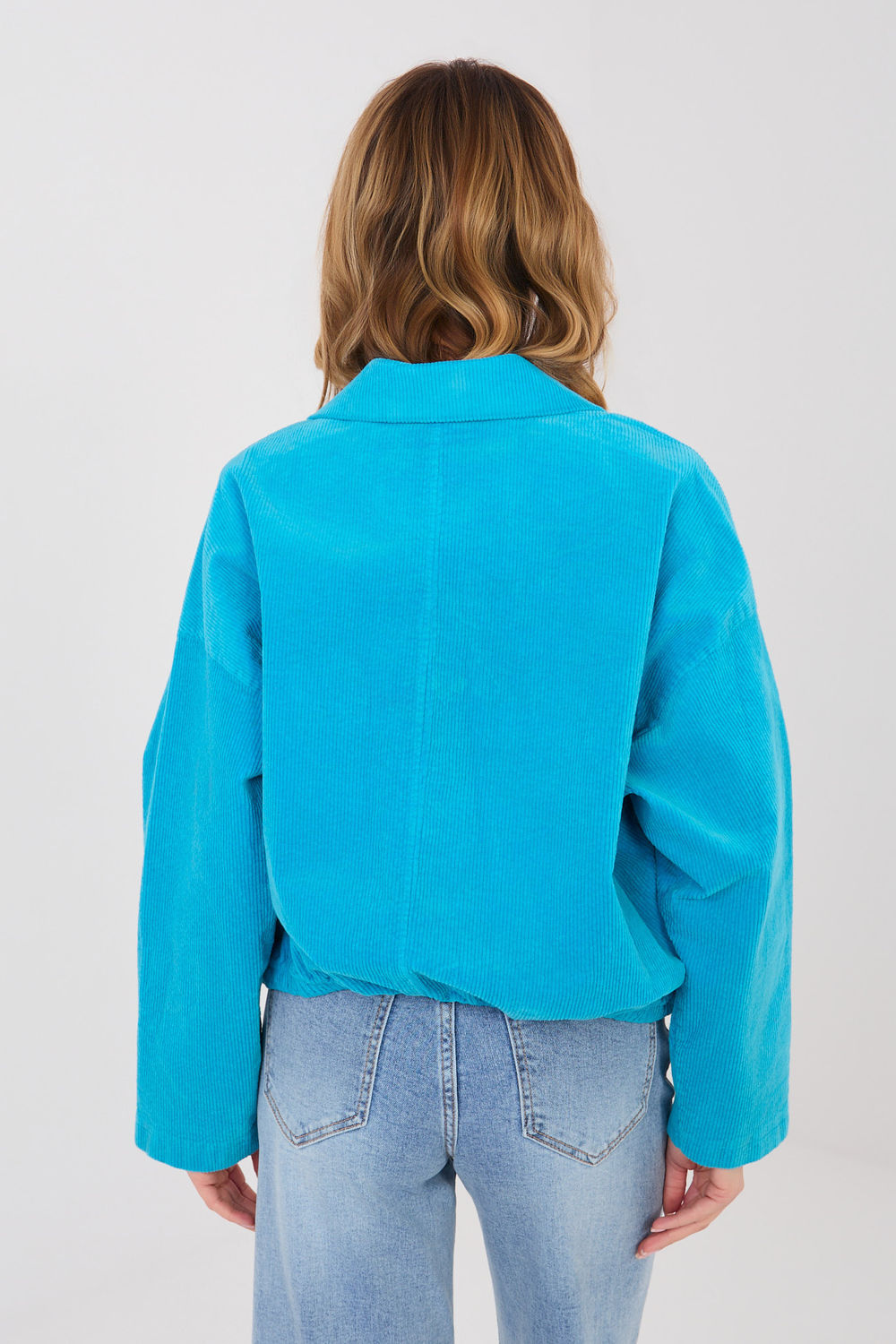 Moderne, dames corduroy jack in casual stijl, ideaal voor dagelijks gebruik in het tussenseizoen. Dit model combineert de klassieke bomberjack vorm met een trendy, licht retro afwerking, waardoor het een veelzijdige keuze is voor vele outfits. Het jack is gemaakt van hoogwaardig katoen met een vleugje elastaan, wat zorgt voor comfortabel dragen en een subtiele elasticiteit van het materiaal. Het heeft een glad patroon, een kort model en lange mouwen die lichtheid en een moderne uitstraling geven. Praktische opgestikte zakken aan de voorkant zorgen voor handig opbergen van kleine spullen, en de knoopsluiting en ingebouwde elastische band aan de onderkant zorgen voor een goede pasvorm en draagcomfort. Een extra voordeel zijn de afneembare decoratieve broches waarmee de uitstraling van het jack gepersonaliseerd kan worden. Het model is afgewerkt met een klassiek kraagje, wat het elegante karakter van de bomberjack benadrukt, terwijl het toch casual en ontspannen blijft. Dit is de ideale keuze voor vrouwen die op zoek zijn naar een praktisch en stijlvol jack voor de lente of herfst.