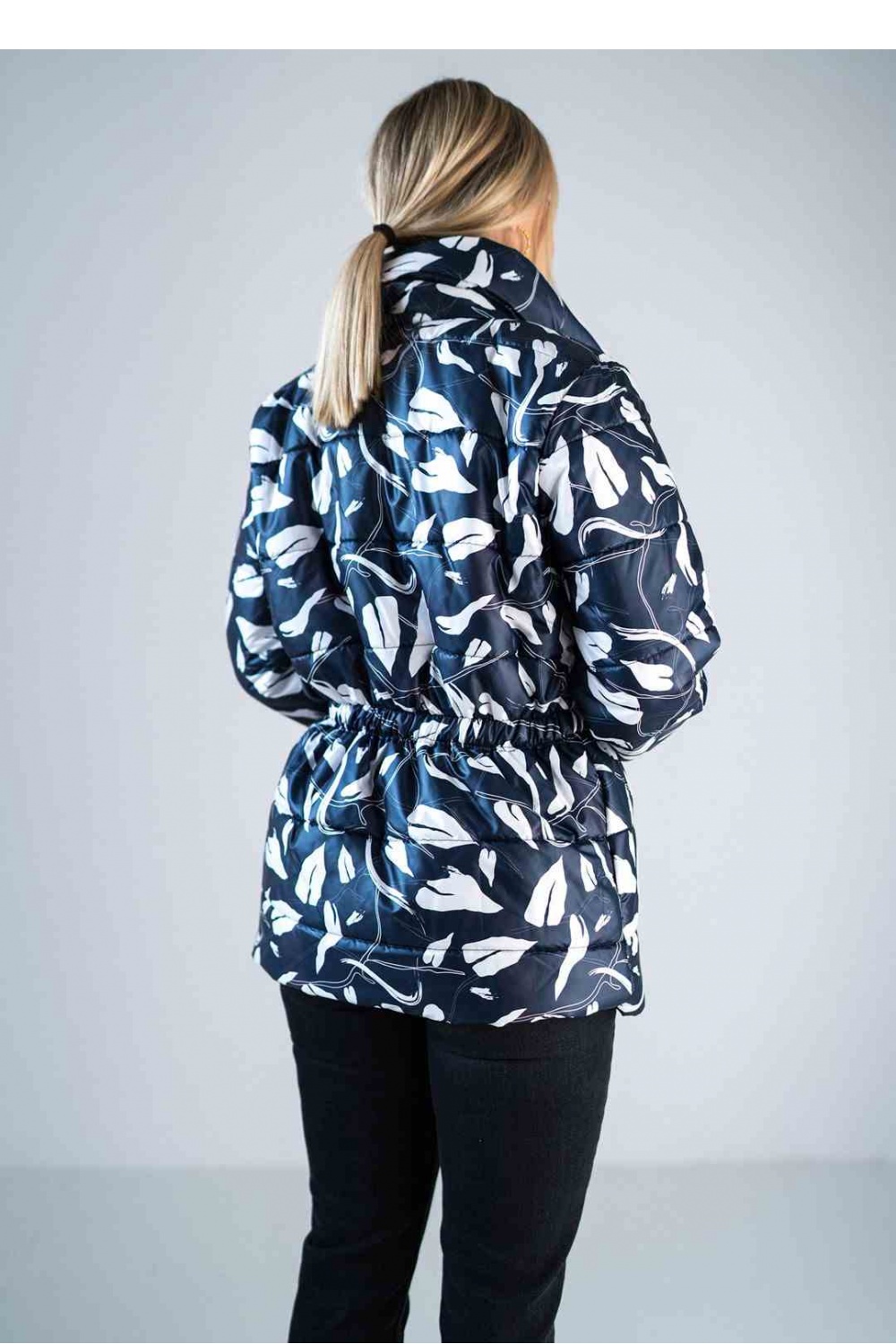 Glanzend gewatteerd heuplang jack met hoge opstaande kraag. Gekreukt in de taille en mouwen met elastiek. Gesloten met drukknopen, steekzakken, geïsoleerd met voering.