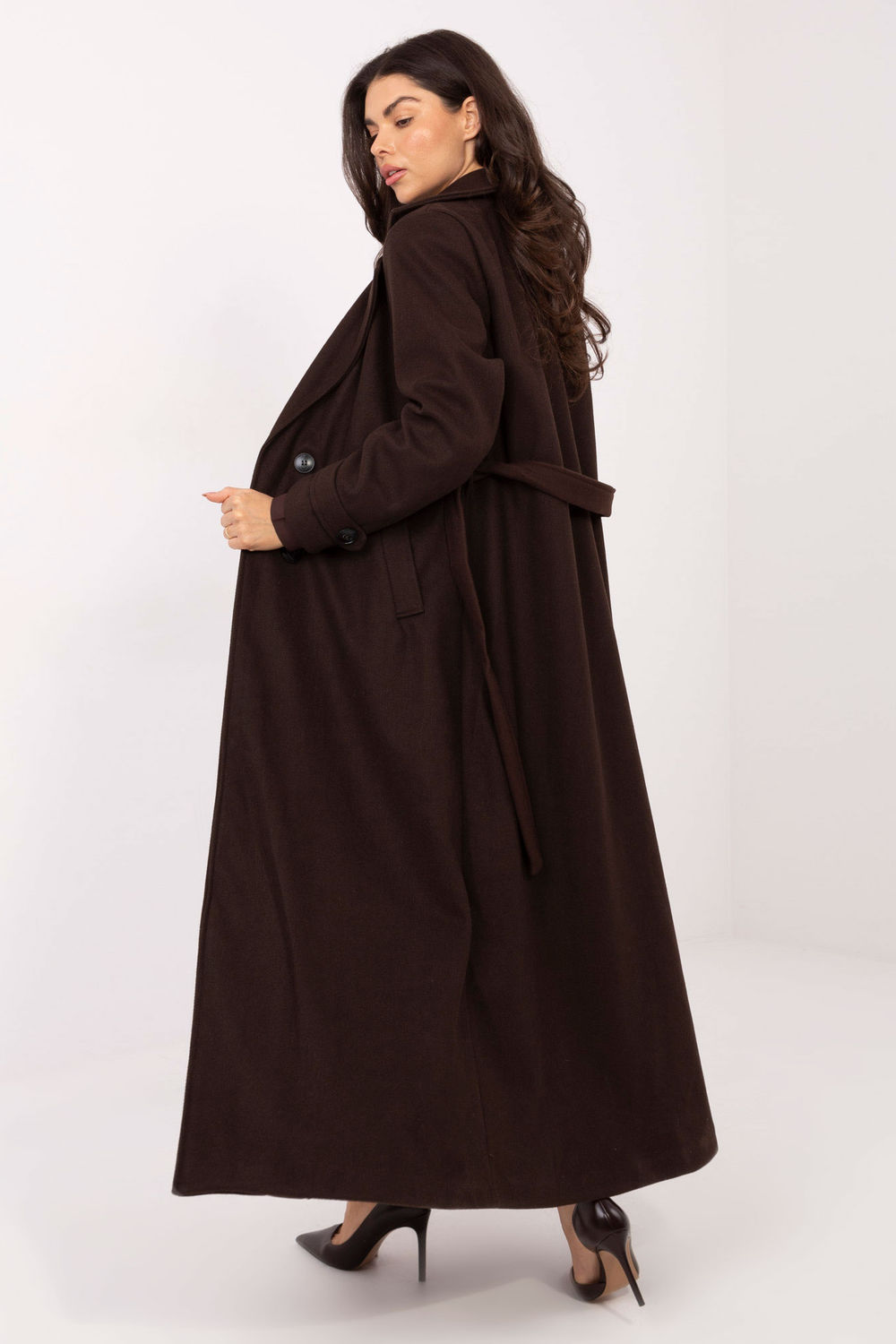 De lange damesjas is een elegante optie voor het tussenseizoen herfst, winter en lente. Gemaakt van hoogwaardig polyester, in een klassiek, glad patroon, combineert het stijl en functionaliteit. Het model met revers, brede kraag en dubbele rij knopen benadrukt de chique uitstraling van elke outfit. De jas heeft steekzakken, een ceintuur in de taille en een voering, wat comfort en gemak biedt bij het dragen. Het zal perfect zijn in zowel dagelijkse, formele als zakelijke outfits, elegantie en klasse toevoegend aan elke vrouw.