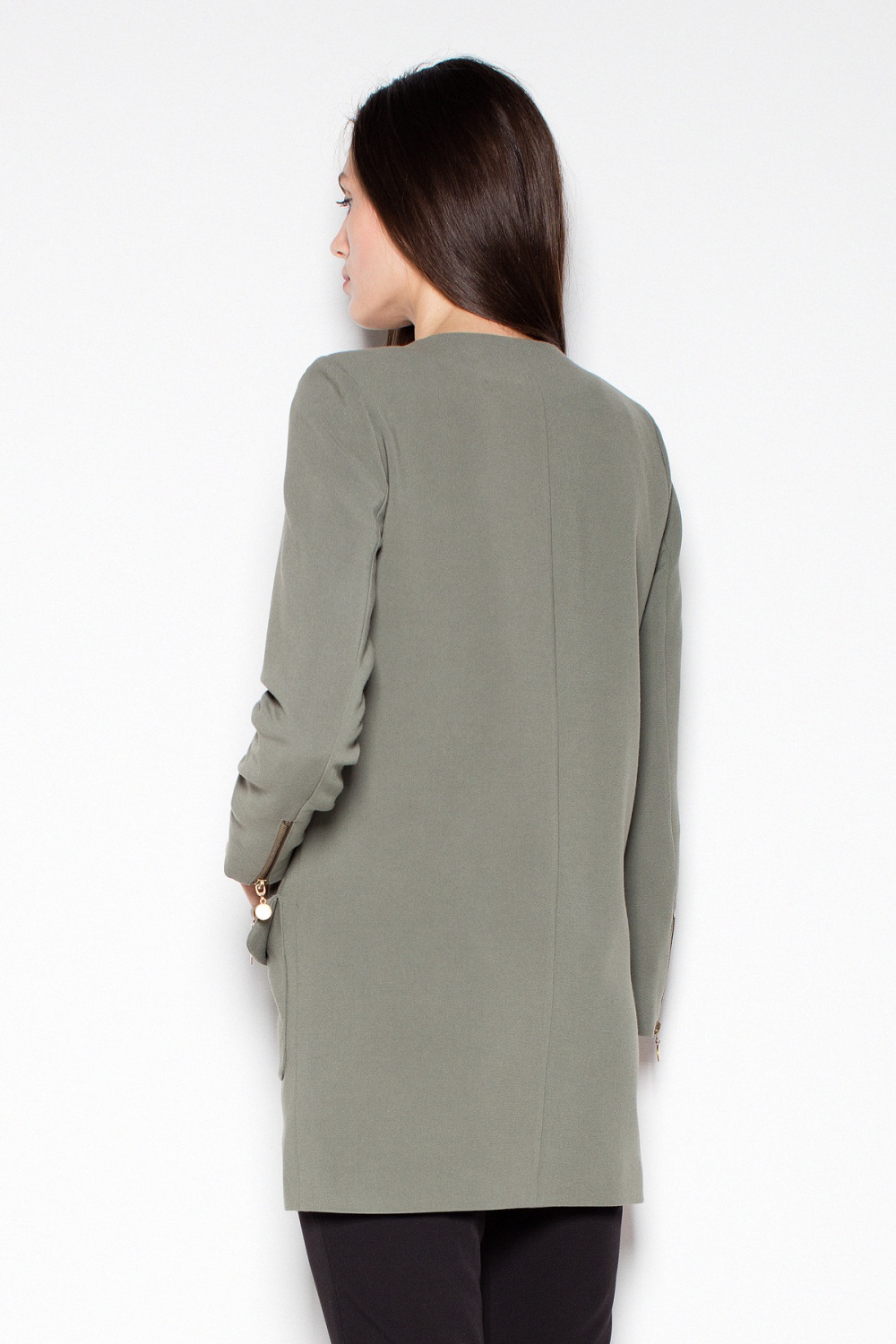 Een recht model jas met ritssluiting, afgewerkt met sierzakken en een opvallende split bij de ritssluiting. Decoratieve ritsen aan de manchetten en kraag. Geweldig voor alledaagse styling.