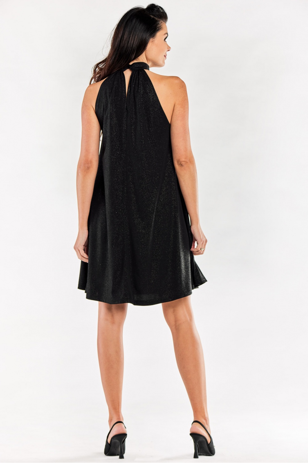 Korte, uitlopende jurk met decoratieve nekplooi, op een geknoopte kraag. Jurk is genaaid op een elastische voering. Jurk gemaakt in Polen.