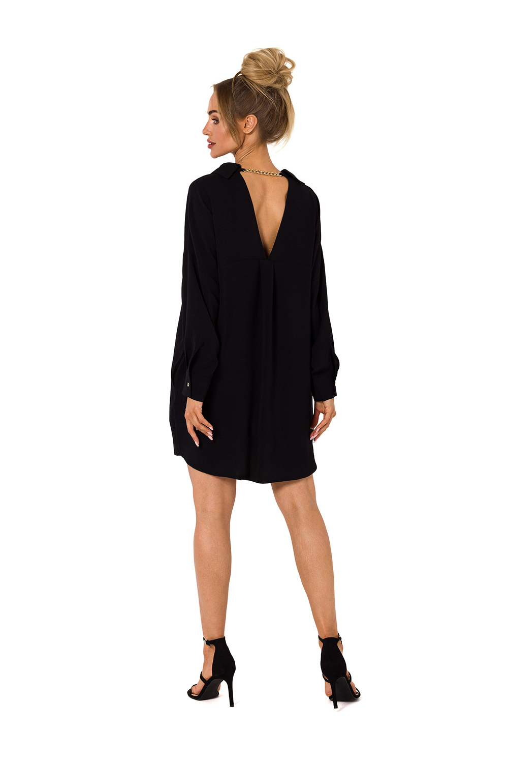 Tuniekjurk met kraag en rughals versierd met een ketting. Jurk met lange mouwen en een losse pasvorm.