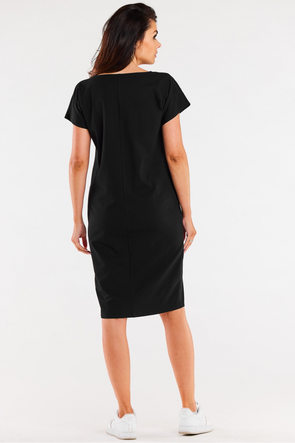 Comfortabel jurkje voor de zomer. Mini-jurk met korte mouwen. Het klassieke jurkje is gemaakt van katoen en elastaan, waardoor het de hele dag comfortabel en draagbaar is. Ontworpen en genaaid in Polen.