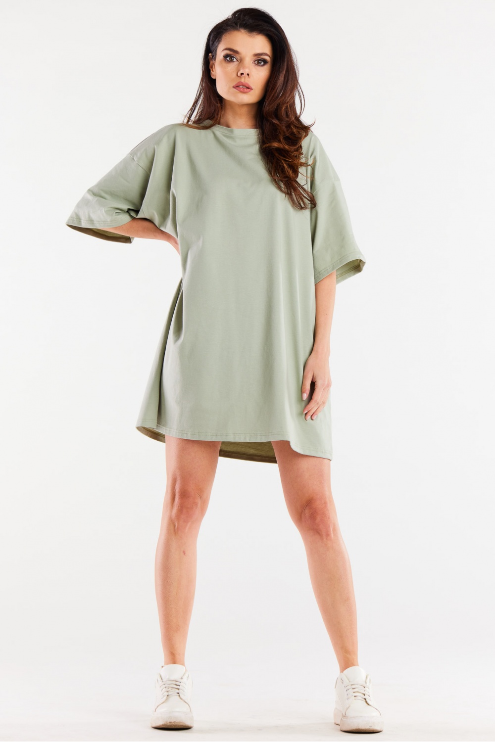 De jurk is gemaakt van een aangename stof. De karakteristieke wijde snit trekt zeker de aandacht. Product gemaakt in Polen.