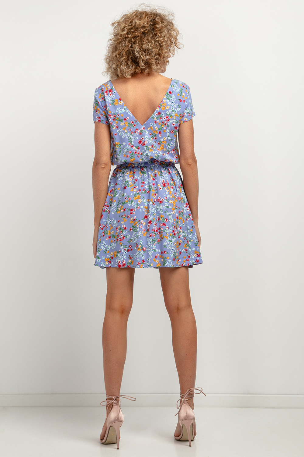 De prachtige jurk is een geweldige optie voor zowel een elegante als een alledaagse styling. De bovenkant van de jurk heeft een losse, kimonoachtige snit en een licht uitlopende zoom met een knielengte. Prachtige bloemenpatronen en een diepe V-halslijn op de rug trekken de aandacht, terwijl een vastgebonden riem met een gouden gesp de taille accentueert.