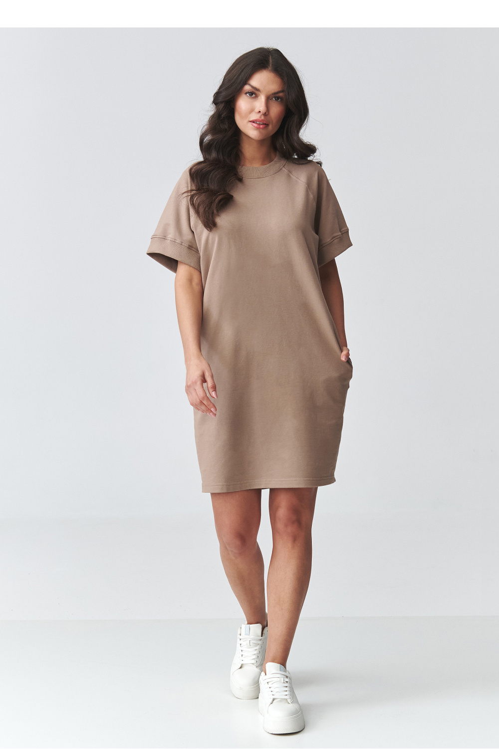 Een stijlvolle en uiterst comfortabele oversized sweatshirt-jurk is de perfecte keuze voor vrouwen die comfort en een modieuze uitstraling waarderen. Het losse model biedt volledige bewegingsvrijheid en de minimalistische snit zorgt ervoor dat het model perfect past bij dagelijkse outfits. Het model heeft korte mouwen en een klassieke, bedekte halslijn, waardoor het een veelzijdig karakter heeft. Een extra voordeel zijn de praktische zakken aan de zijkanten, die de functionaliteit en het comfort van de jurk vergroten. De juiste lengte zorgt ervoor dat de jurk er geweldig uitziet, zowel op zichzelf als in combinatie met favoriete accessoires. Dit is een uitstekende casual jurk voor dagelijks gebruik, perfect voor wandelingen, winkelen, reizen of informele bijeenkomsten. Je kunt het dragen met sneakers, gympen of meer elegante schoenen, waardoor je verschillende outfits kunt creëren.
