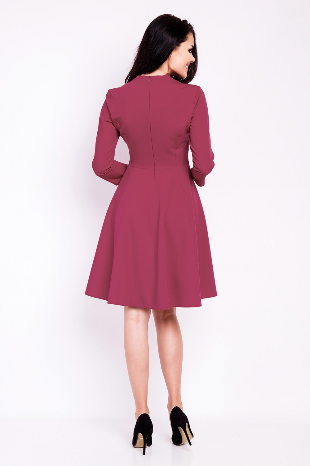 Elegante maar eenvoudige jurk met een uitlopende onderkant. Jurk met 3/4 mouwen, halsuitsnijding met een klein splitje. De jurk wordt gesloten met een bedekte ritssluiting. Ideaal voor vele gelegenheden.