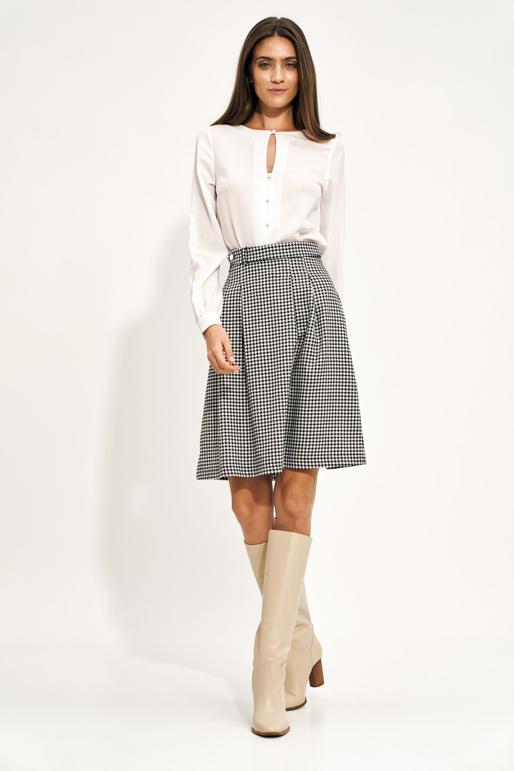 Uitlopende rok is een van de meest populaire stijlen die nooit uit de mode raakt. Past zowel bij overhemden als T-shirts. Model met hoge taille en riem, waarmee je je taille accentueert. Met haar kun je unieke outfits creëren voor zowel werk als dagelijks leven.