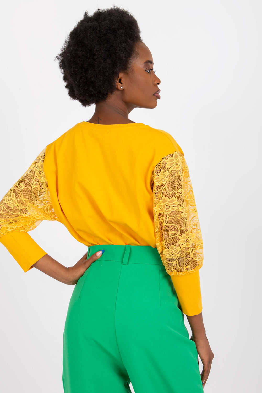 Recht model blouse met 3/4 kanten mouwen en ronde halslijn.